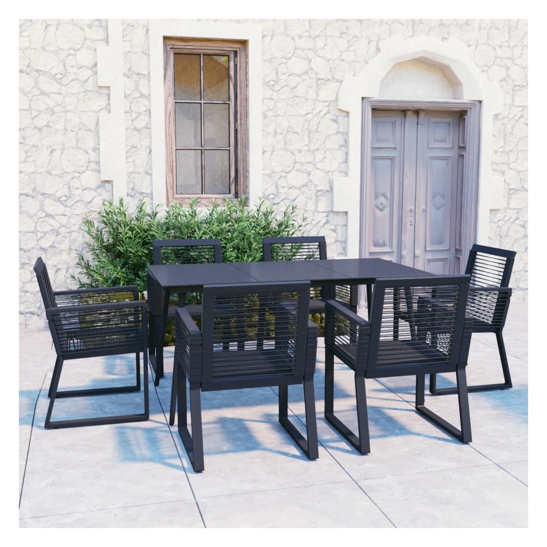 Ensemble à manger d'extérieur 7 pcs Rotin PVC Noir