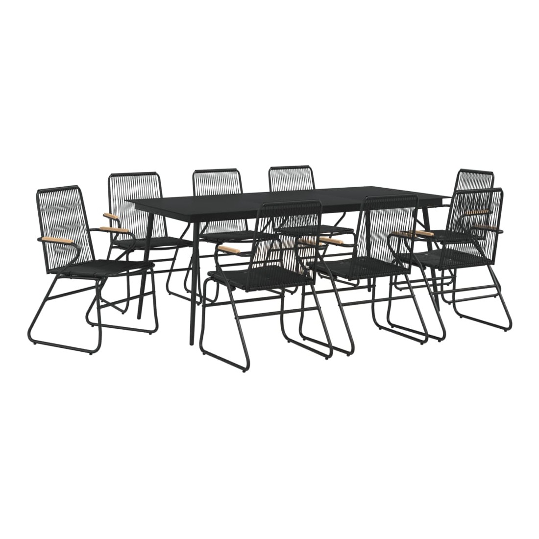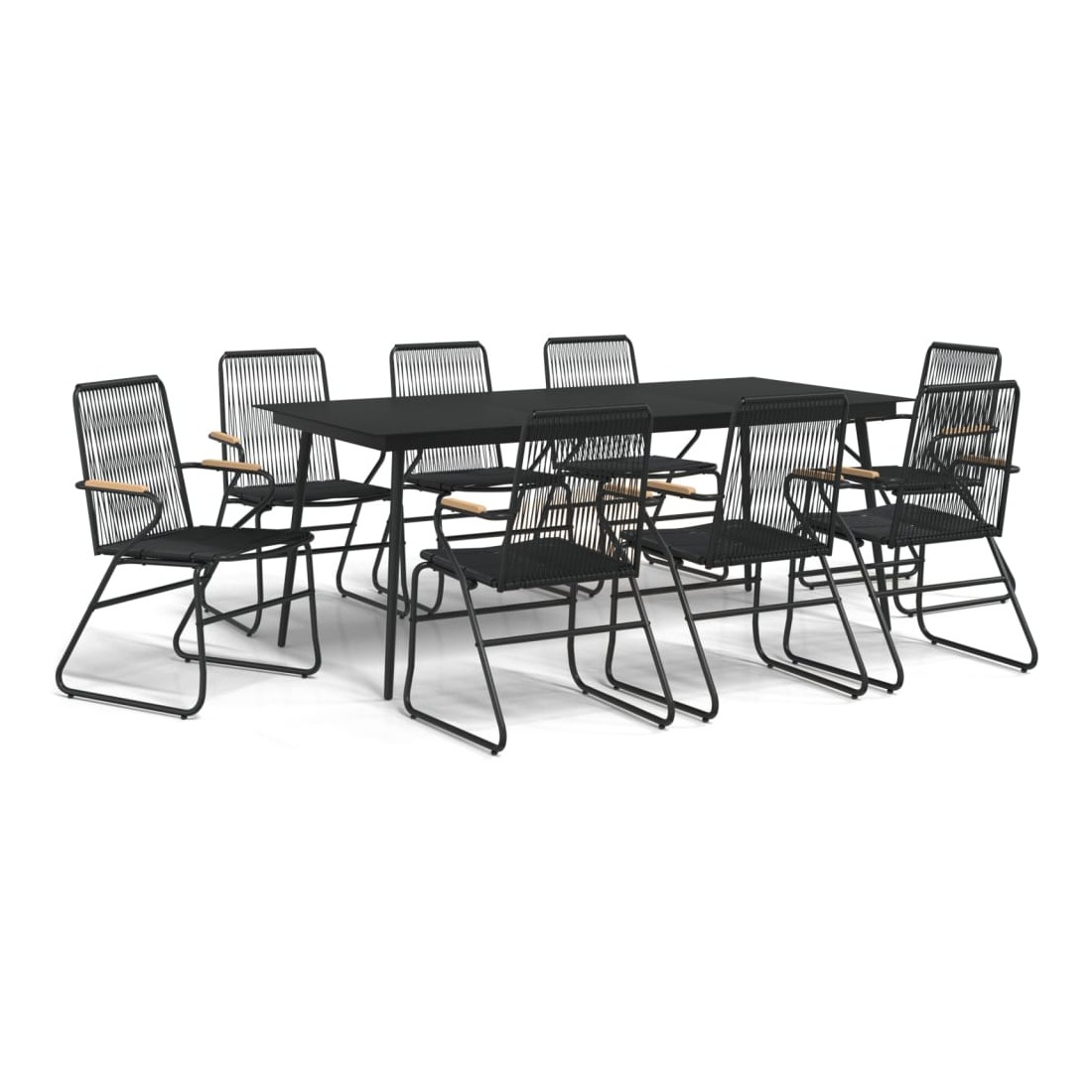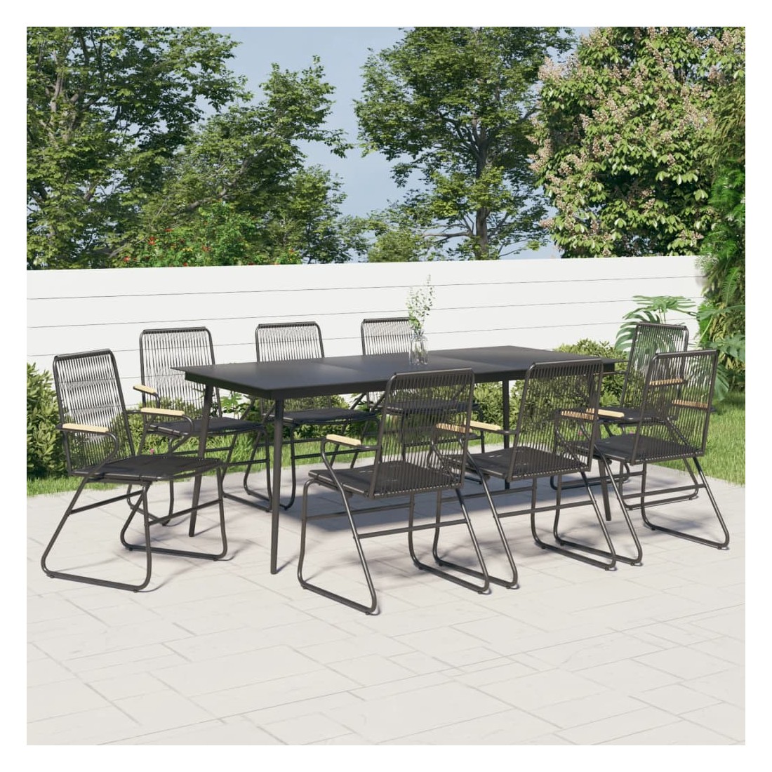 Ensemble à manger de jardin 9 pcs noir rotin PVC