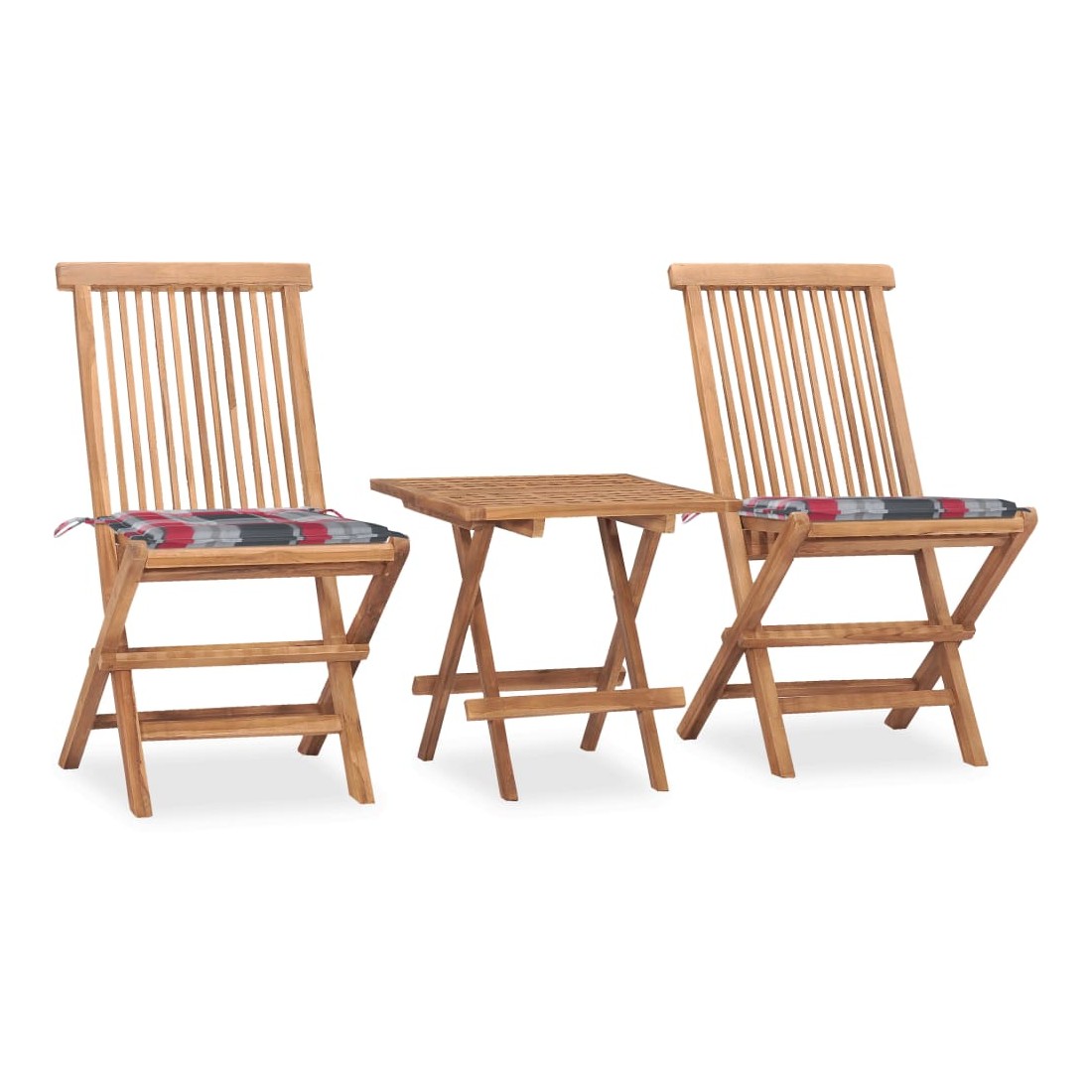 Ensemble à manger d'extérieur pliable avec coussin 3 pcs Teck