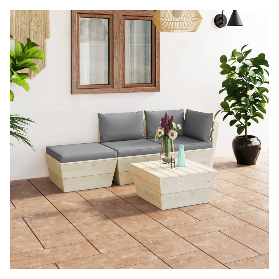 Salon de jardin palette 4 pcs avec coussins bois d'épicéa