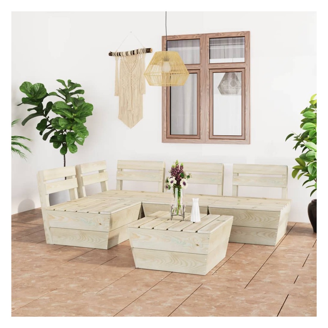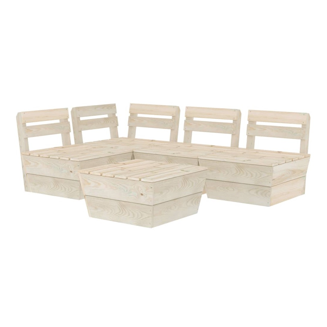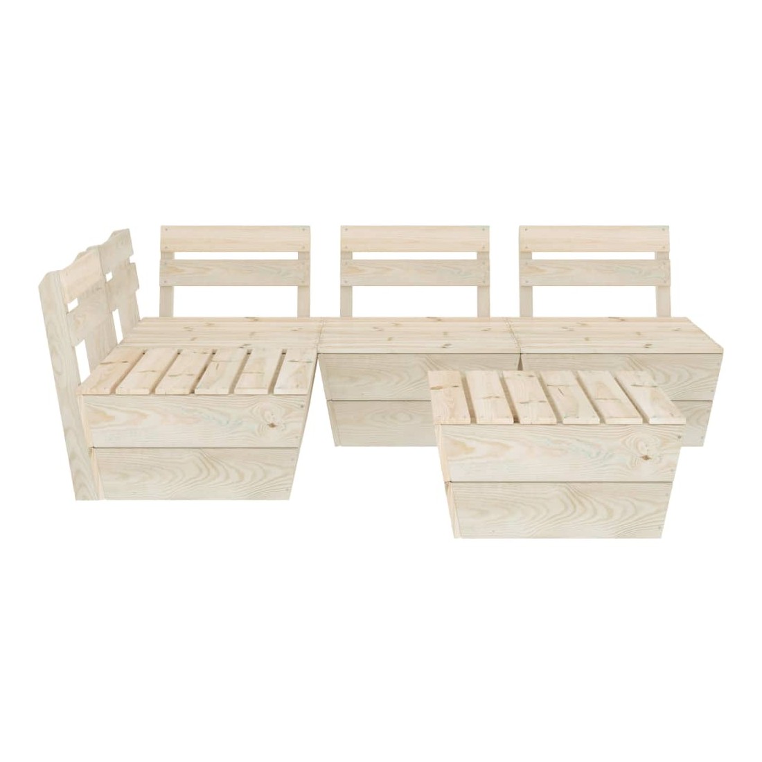 Cet ensemble de salon de jardin palette de 5 pièces est un excellent choix pour vous détendre et profiter du beau temps, faire une sieste ou discuter avec votre famille ou vos amis. L’ensemble de salon en bois, avec un design de palette intemporel, ajoute une touche de charme rustique à votre patio, jardin ou salon. L'ensemble de salon de jardin est fait de bois d'épicéa imprégné, ce qui le rend durable et stable. Cet ensemble de canapé de patio est de construction solide et nécessite peu d'entretien. De plus, la conception modulaire permet également de placer l'ensemble dans n'importe quel arrangement selon votre goût. Veuillez noter que le bois est un produit naturel et peut présenter des imperfections.
