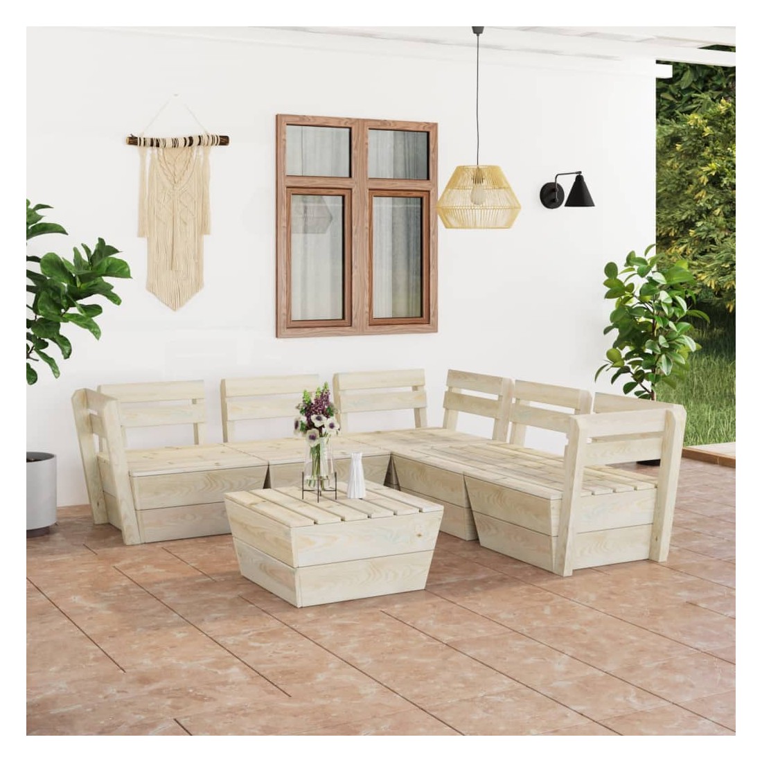 Cet ensemble de salon de jardin palette de 6 pièces est un excellent choix pour vous détendre et profiter du beau temps, faire une sieste ou discuter avec votre famille ou vos amis. L’ensemble de salon en bois, avec un design de palette intemporel, ajoute une touche de charme rustique à votre patio, jardin ou salon. L'ensemble de salon de jardin est fait de bois d'épicéa imprégné, ce qui le rend durable et stable. Cet ensemble de canapé de patio est de construction solide et nécessite peu d'entretien. De plus, la conception modulaire permet également de placer l'ensemble dans n'importe quel arrangement selon votre goût. Veuillez noter que le bois est un produit naturel et peut présenter des imperfections.