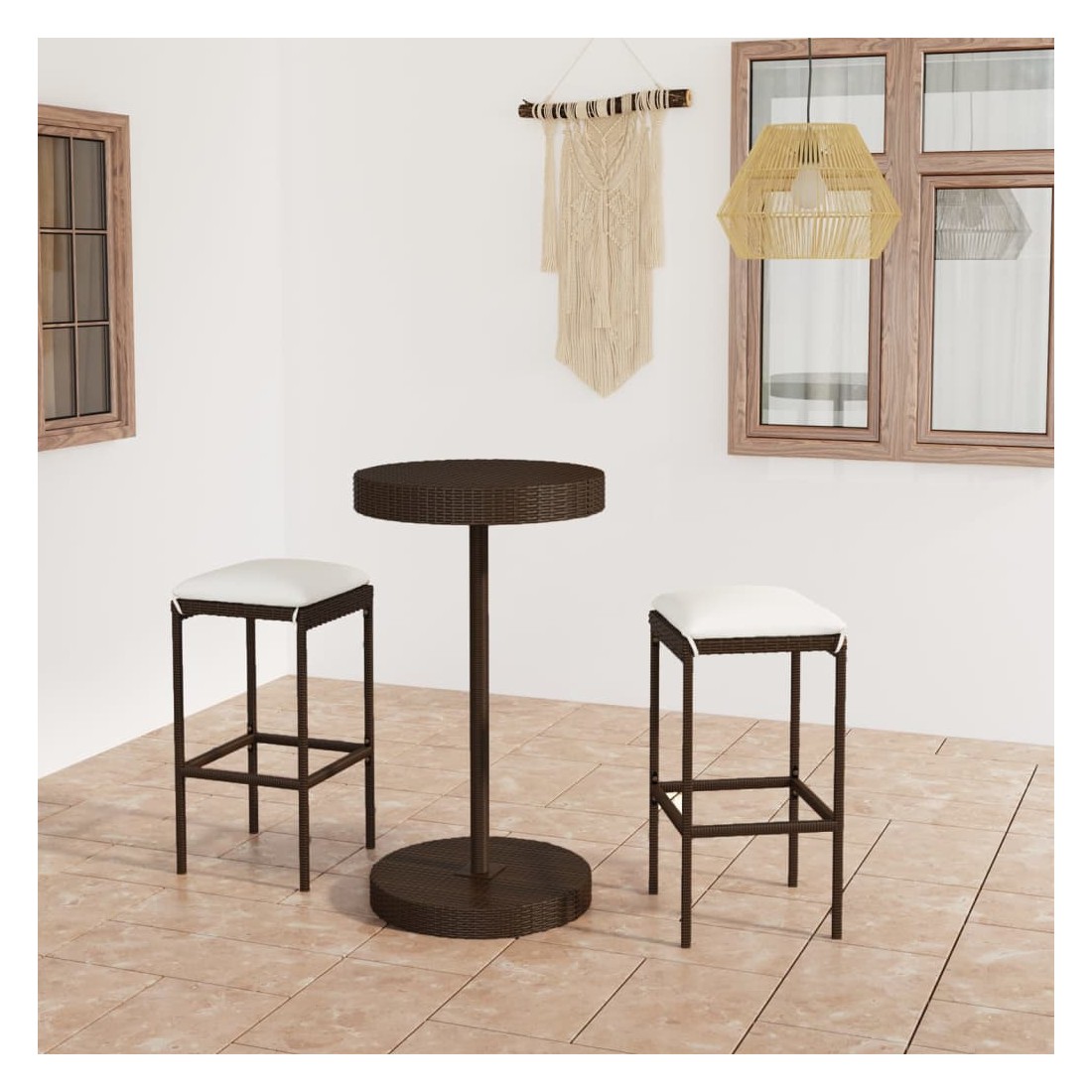 Cet ensemble élégant de bar de jardin vous permet de passer des moments agréables et confortables avec votre famille et vos amis. La table de bar est soutenue par un cadre en acier enduit de poudre, ce qui la rend stable et robuste. Le dessus de table rond est idéal pour placer des boissons, de la nourriture ou des objets décoratifs. Les tabourets ont une construction solide de cadre en acier et sont faits de résine tressée résistante aux intempéries, assurant la stabilité et sont faciles à déplacer. Le coussin et le repose-pied ajoutent également du confort d’assise supplémentaire au tabouret. La housse de coussin en polyester avec fermeture éclair dissimulée le rend facile à nettoyer.