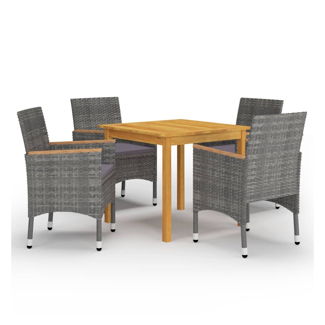 Créez une esthétique convaincante et uniforme dans votre espace extérieur avec cet ensemble de salle à manger de jardin ! La table de salle à manger est en bois d’acacia massif avec une finition à l’huile, ce qui la rend stable, durable et facile à entretenir. Dotées d’un cadre en acier enduit de poudre recouvert de résine tressée résistante aux intempéries, ces chaises sont robustes et faciles à nettoyer. La chaise d’extérieur, conçue avec dossier incurvé et accoudoir, présente une forme plus ergonomique pour un confort maximal. Les accoudoirs sont joliment décorés de bois d'acacia massif avec une finition à l'huile naturelle, ce qui apporte une sensation de charme rustique. De plus, les coussins bien rembourrés offrent un confort suprême pendant votre temps assis. Remarque importante : Nous vous recommandons de couvrir l'ensemble de salle à manger pendant la pluie, la neige et le gel pour une utilisation durable.