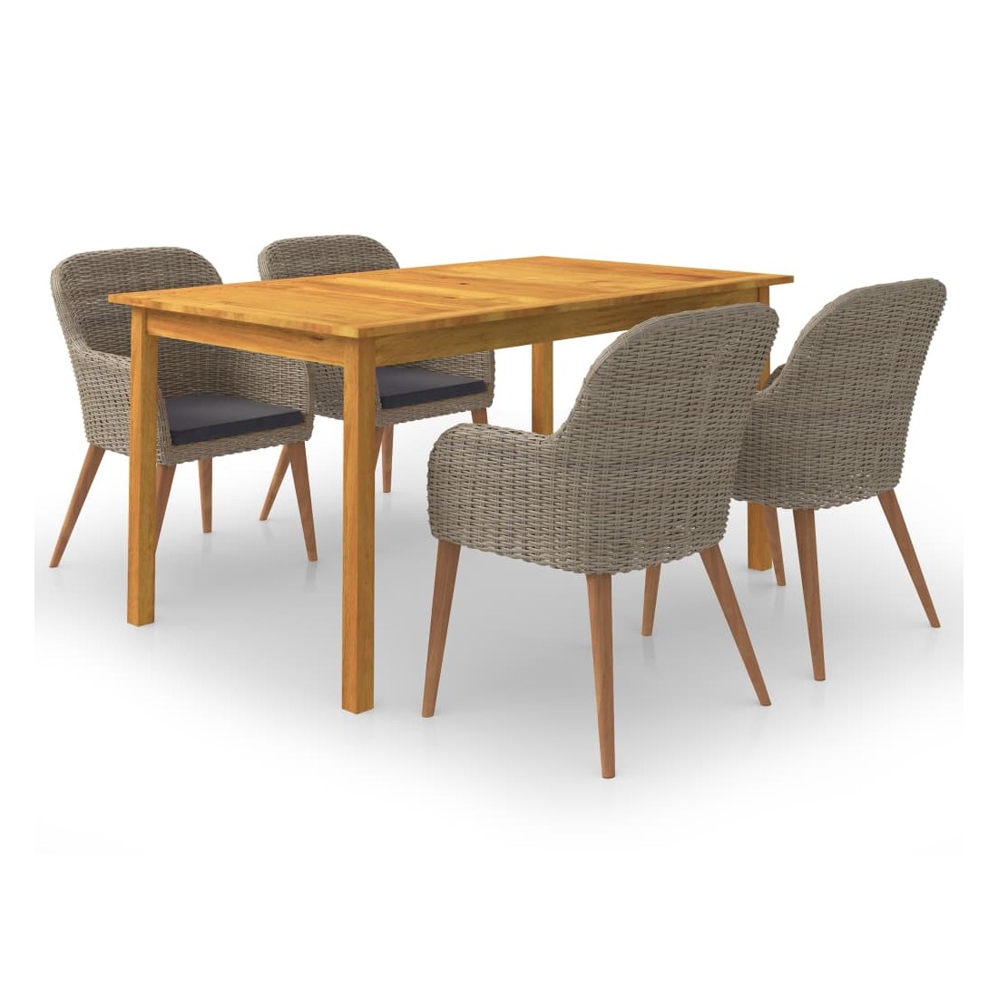 Créez une esthétique convaincante et uniforme dans votre espace extérieur avec cet ensemble de salle à manger de jardin ! La table de salle à manger est fabriquée en bois d’acacia massif avec une finition à l’huile, ce qui la rend stable, durable et facile à entretenir. Dotées d’un cadre en acier enduit de poudre recouvert de résine tressée résistante aux intempéries, ces chaises de salle à manger sont robustes et faciles à nettoyer. La forme ergonomique et les coussins bien rembourrés offriront le confort d’assise suprême. Les housses de coussin en polyester à faible entretien peuvent être facilement retirées et lavées. Remarque importante : Nous vous recommandons de couvrir l'ensemble de salle à manger pendant la pluie, la neige et le gel pour une utilisation durable.