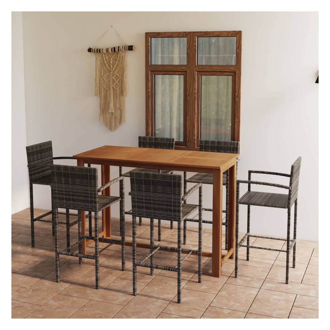 Cet ensemble de bar de jardin a un design élégant et sera le point de mire de votre jardin, patio ou terrasse. La table est en bois d’acacia massif avec une finition à l’huile, ce qui la rend stable, durable et facile à entretenir. Doté d’un cadre en acier enduit de poudre recouvert de résine tressée résistante aux intempéries, le tabouret de bar est robuste et facile à nettoyer. Remarque : nous vous recommandons de couvrir l'ensemble pendant la pluie, la neige et le gel.