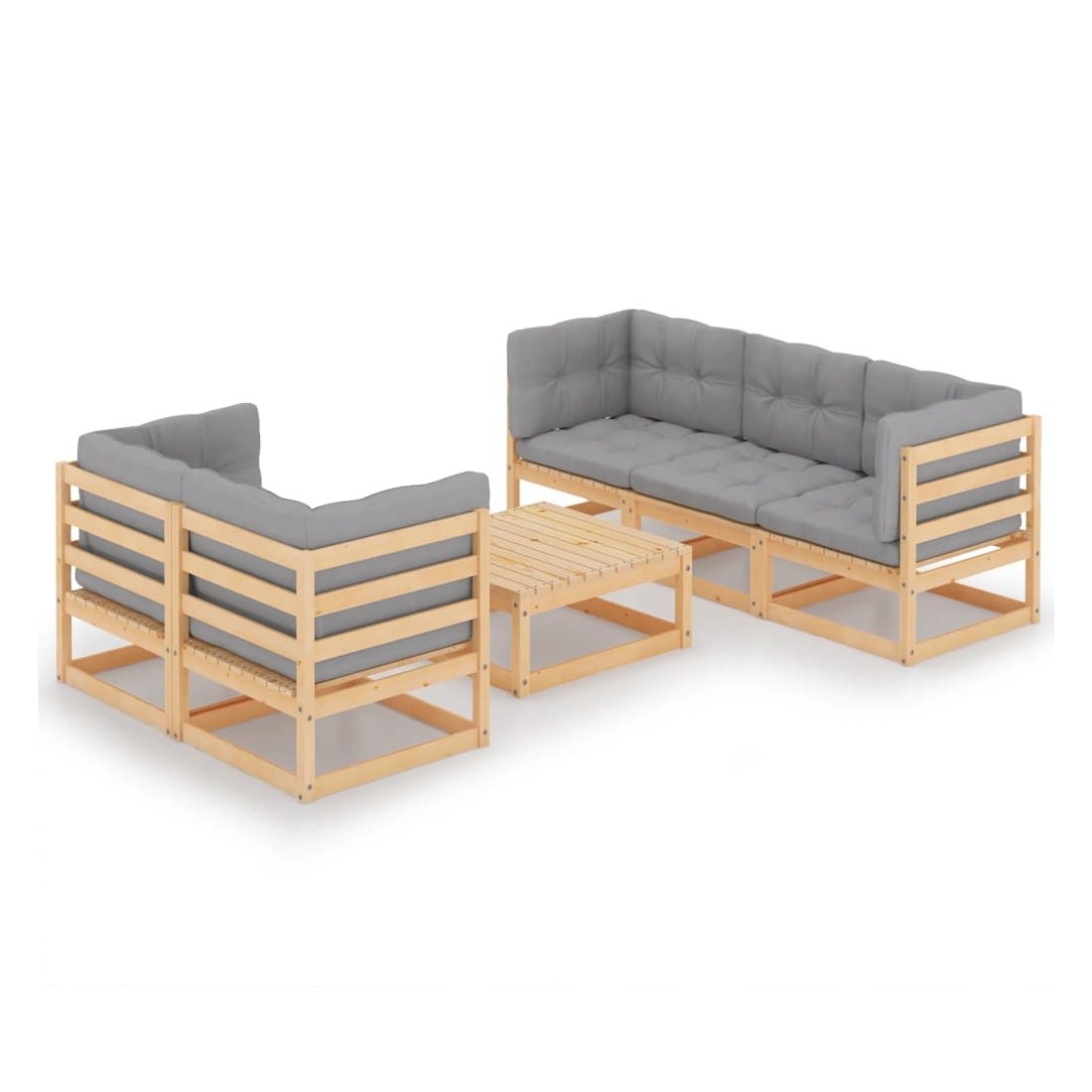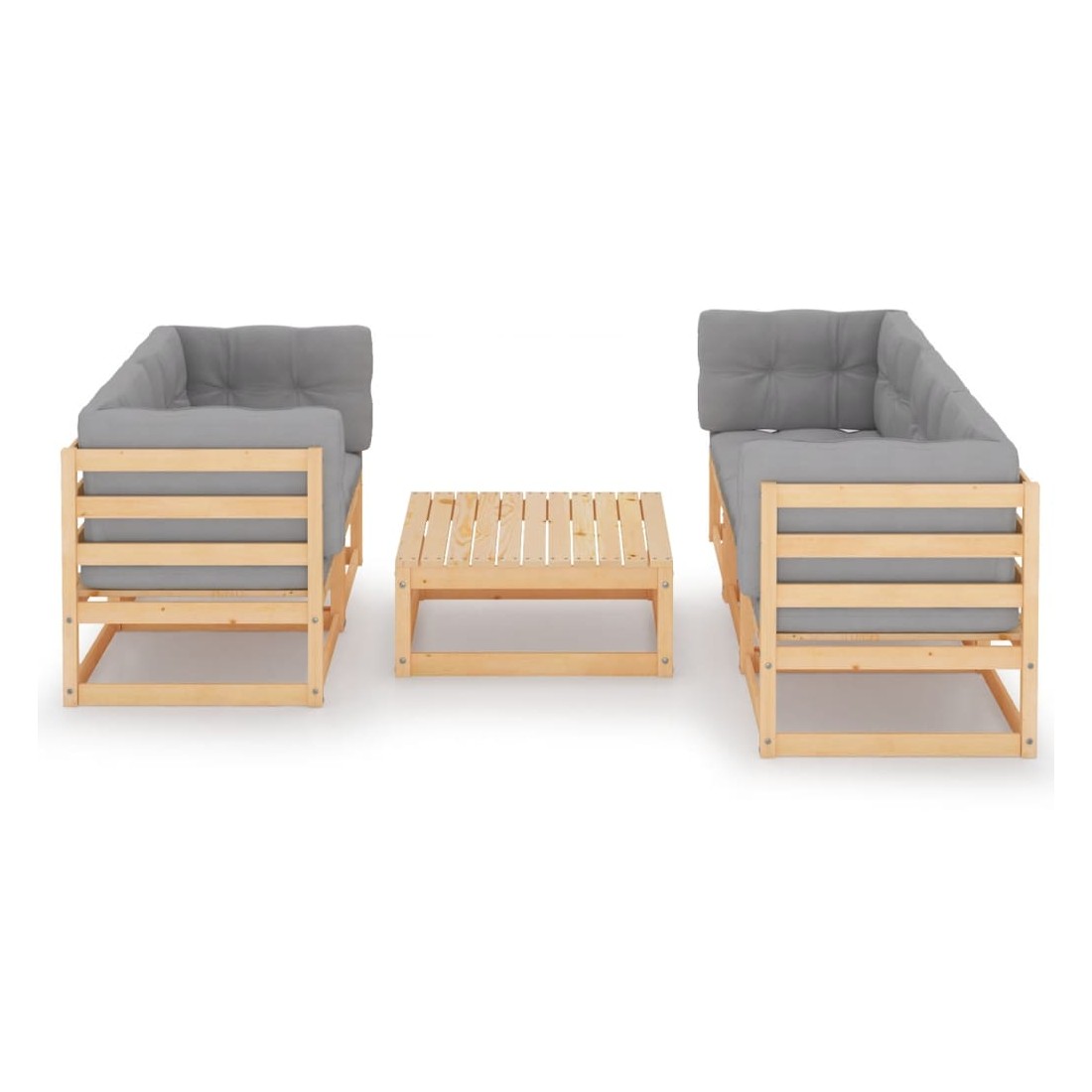 Ce salon de jardin est un excellent choix pour vous détendre et profiter du beau temps, faire une sieste ou discuter avec votre famille ou vos amis. L’ensemble de salon de jardin est fabriqué en bois de pin massif, ce qui le rend robuste et stable. Les coussins ajoutent un confort supplémentaire. Vous pouvez le combiner avec d’autres segments modulaires pour créer vos propres configurations de salon de jardin ! Remarque : afin de prolonger la durée de vie des meubles d'extérieur, nous vous recommandons de les protéger avec une housse imperméable.