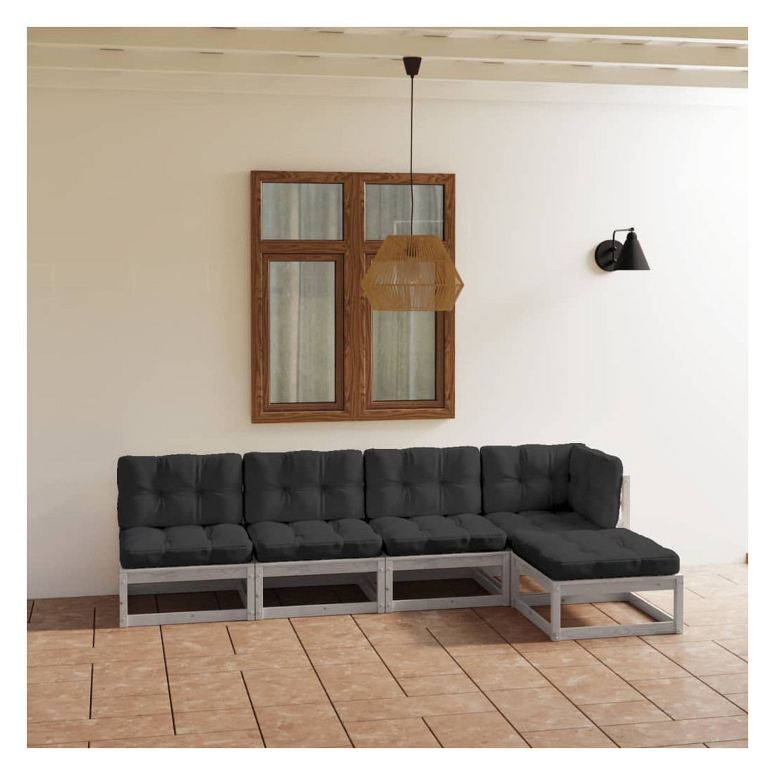 Salon de jardin 5 pcs avec coussins Bois de pin massif