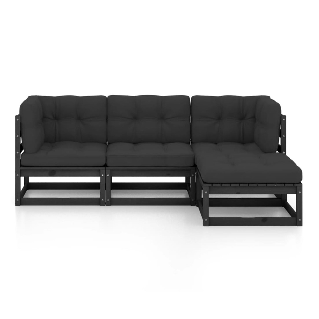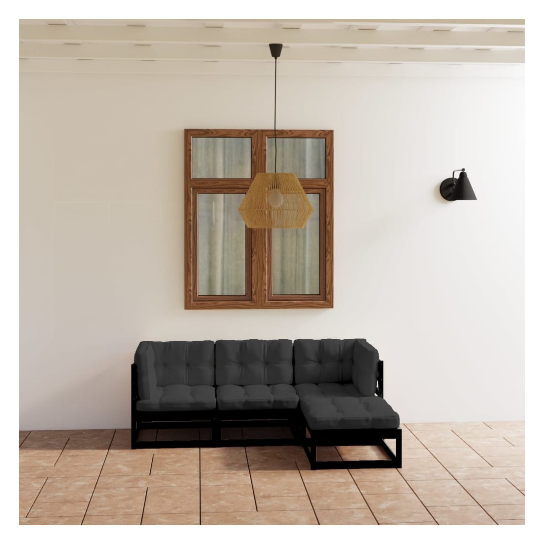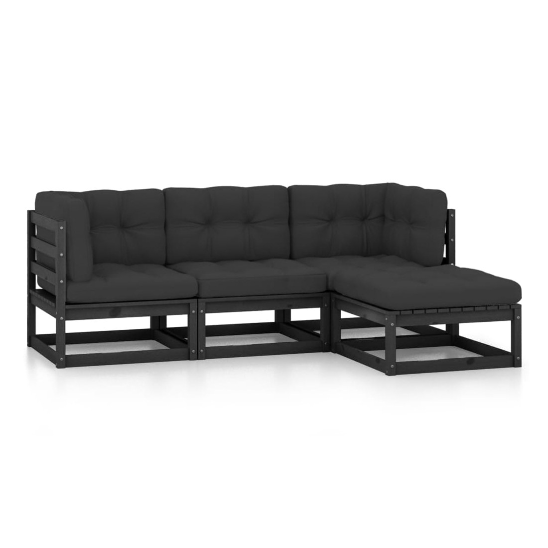 Salon de jardin 4 pcs avec coussins Bois de pin massif