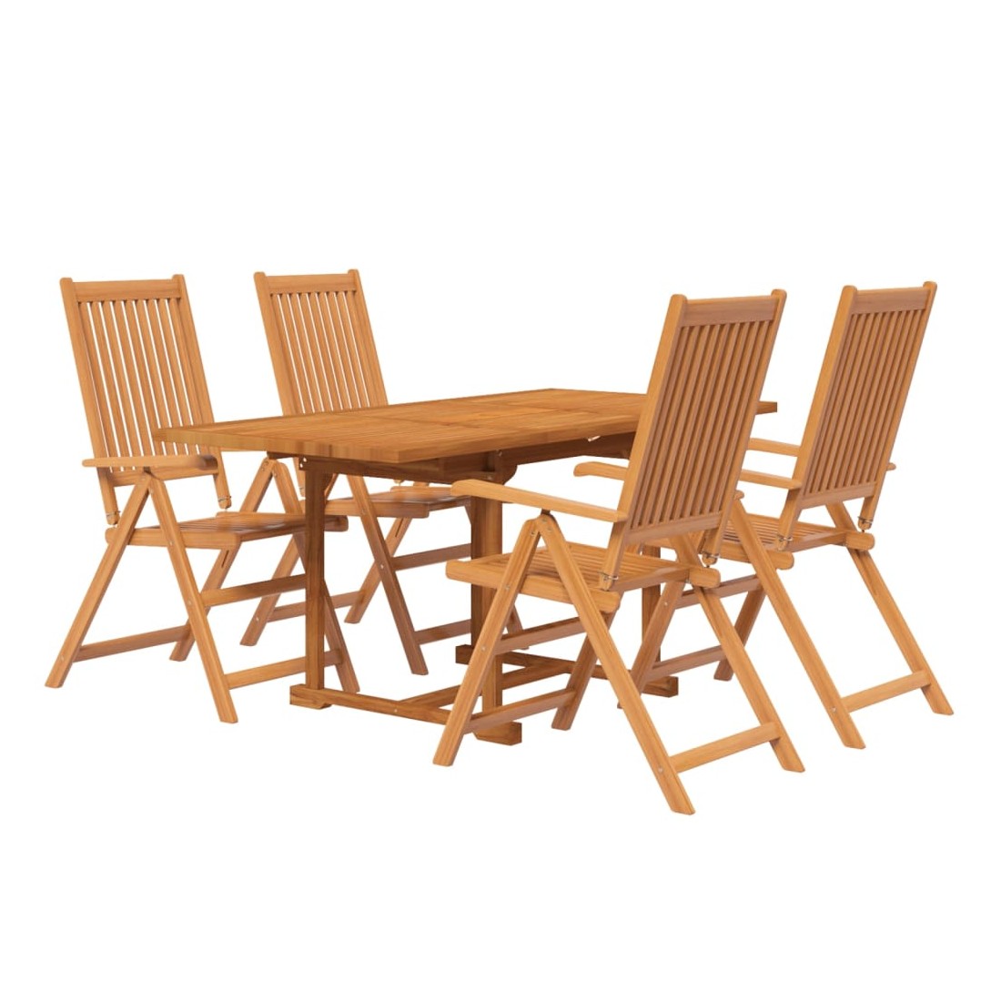 Profitez d'un bon repas en plein air avec votre famille et vos amis avec cet ensemble de salle à manger de jardin en bois ! Matériau de qualité supérieure : cet ensemble de salle à manger est fabriqué en bois d'acacia massif, un bois dur tropical, qui résiste aux intempéries et est durable pour des années d'utilisation. La surface à finition à l'huile est facile à nettoyer avec un chiffon humide. Table extensible : la table à manger est extensible, répondant à vos différents besoins. Chaise réglable et pliable : la chaise d'extérieur peut être réglée sur 5 positions, vous offrant un confort d'assise optimal. Ces chaises de salle à manger peuvent également être pliées pour économiser de l'espace lorsqu'elles ne sont pas utilisées. Remarque : Afin de prolonger la durée de vie de votre mo