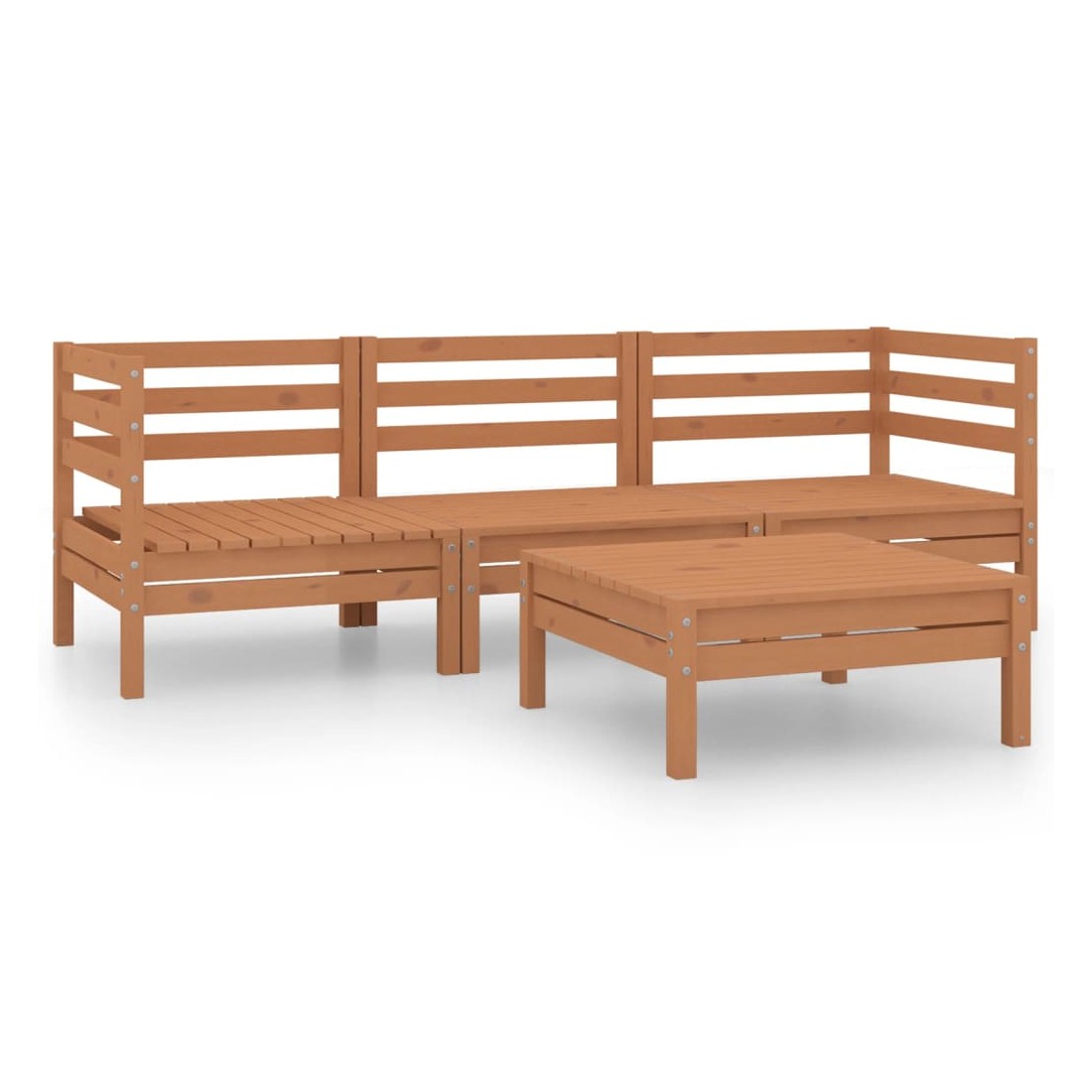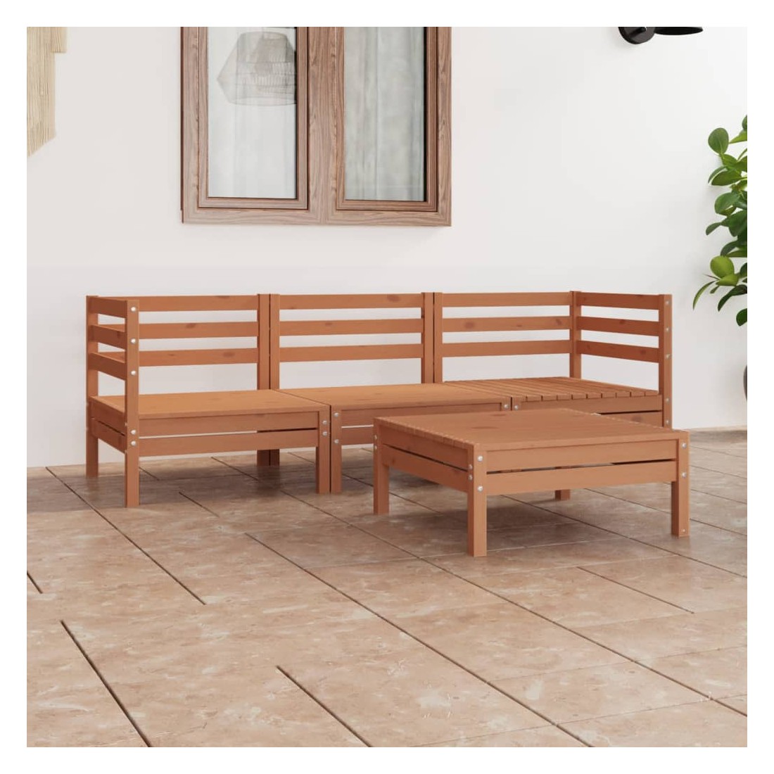 Salon de jardin 4 pcs Marron miel Bois de pin massif