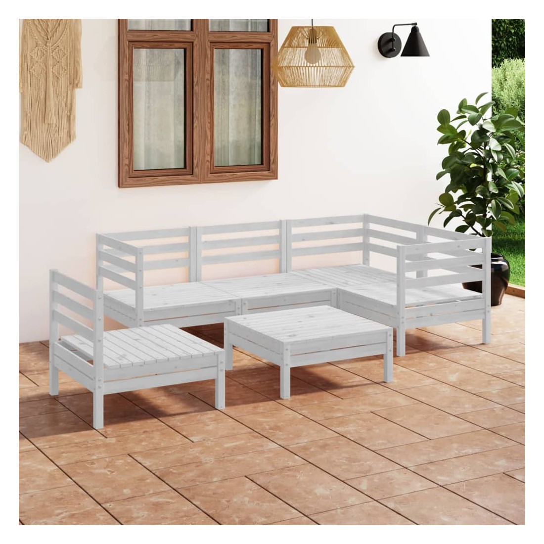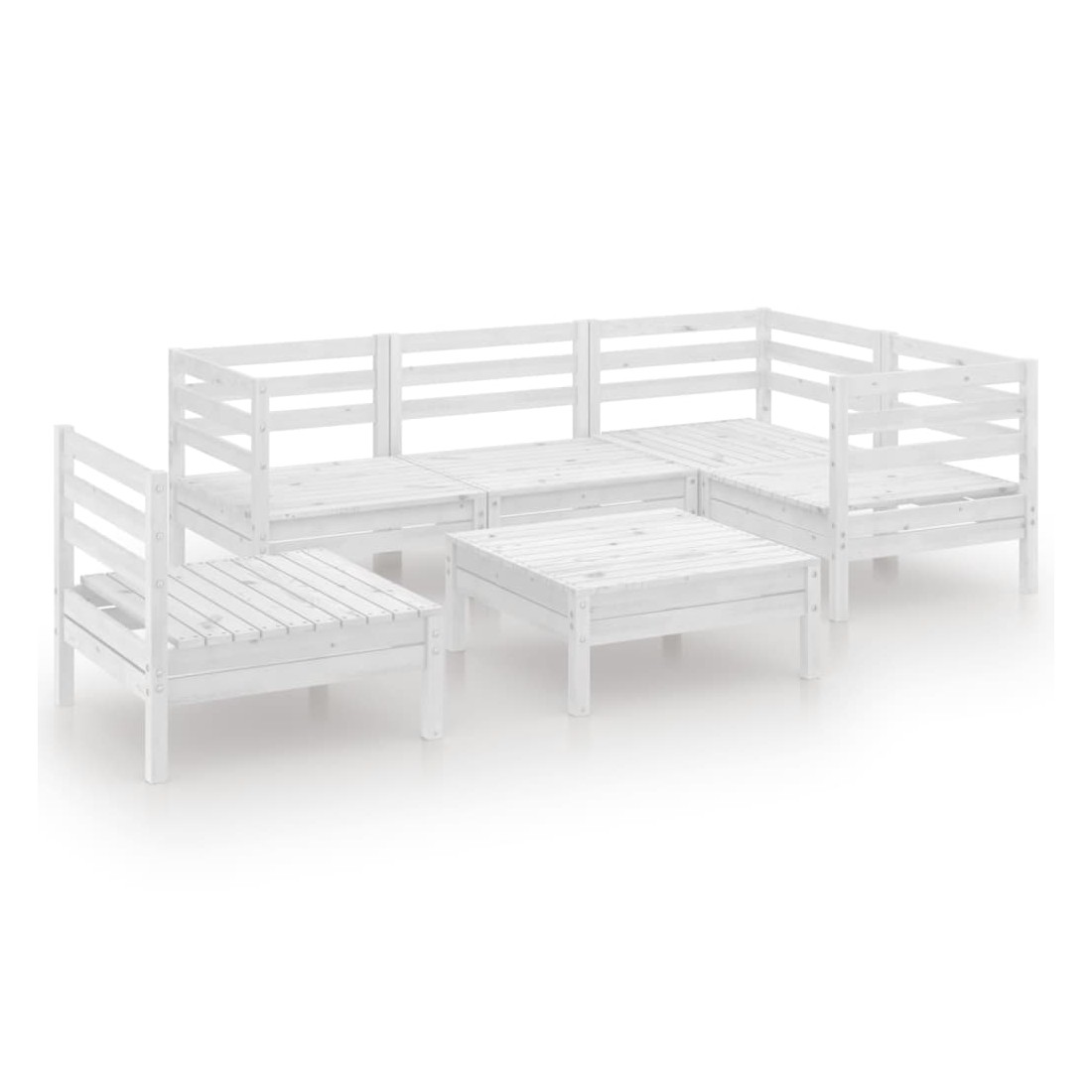 Salon de jardin 6 pcs Bois de pin massif Blanc