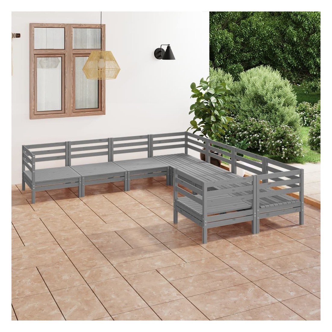 Salon de jardin 8 pcs Bois de pin massif Gris