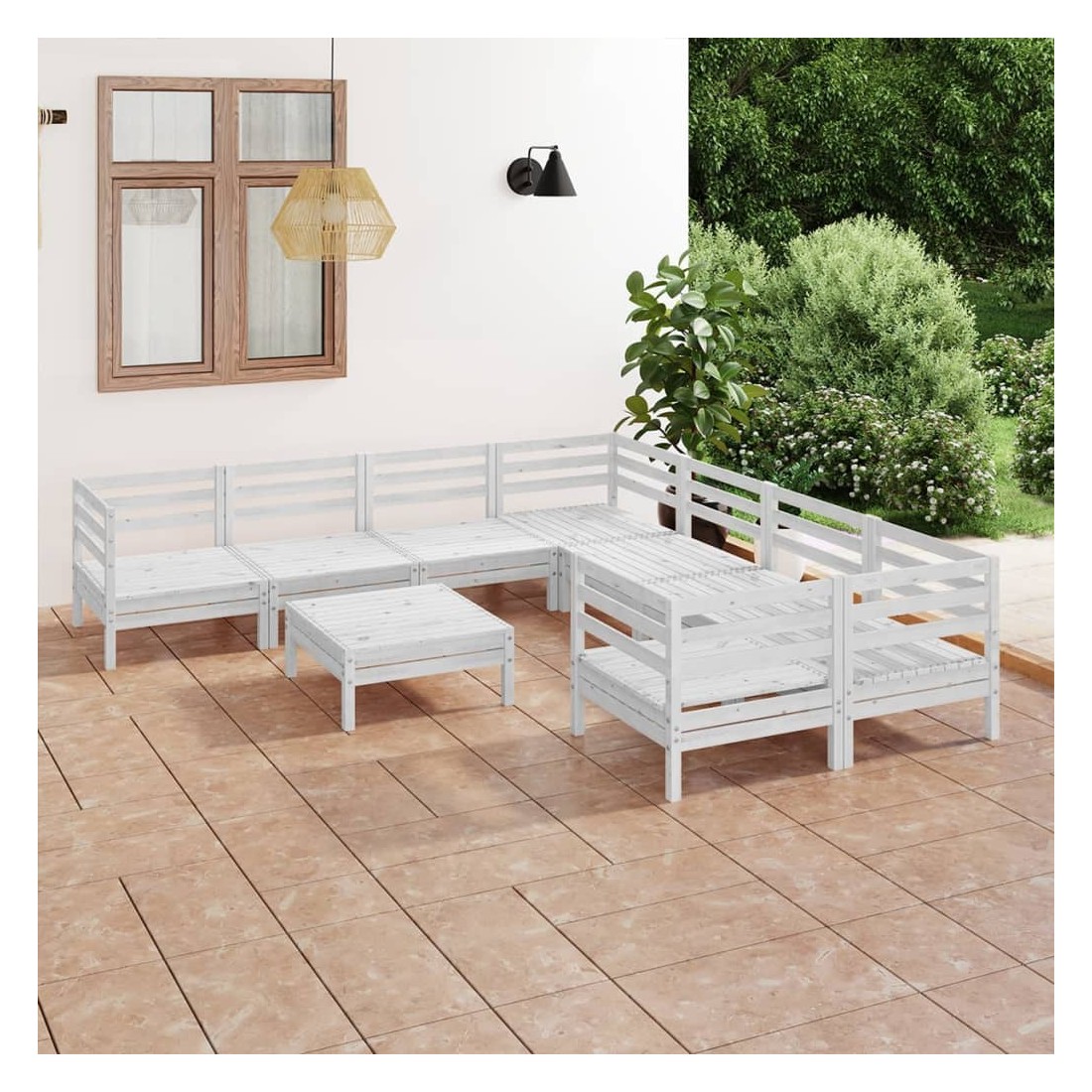 Cet ensemble de salon de jardin en bois est un choix idéal pour vous détendre, profiter du beau temps, faire une sieste ou discuter en famille ou entre amis. Avec son design intemporel de palette, l'ensemble de canapés en bois ajoute une touche de charme rustique à votre terrasse, jardin ou salon. Fabriqué en bois de pin massif, cet ensemble de salon de patio est très durable et résistant aux intempéries. Cet ensemble de meubles a une construction solide et nécessite peu d'entretien. De plus, la conception modulaire permet également de placer l'ensemble dans n'importe quel arrangement selon vos goûts. Remarque : afin de prolonger la durée de vie des meubles d'extérieur, nous vous recommandons de les protéger avec une housse imperméable.