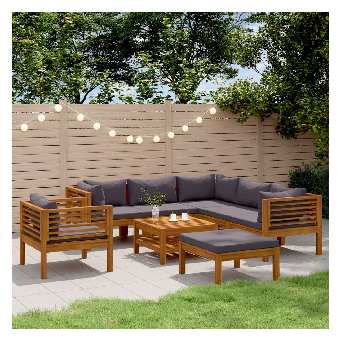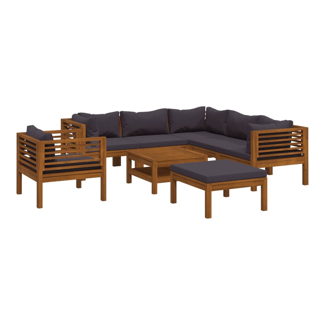 Salon de jardin 8 pcs avec coussin Bois d'acacia solide