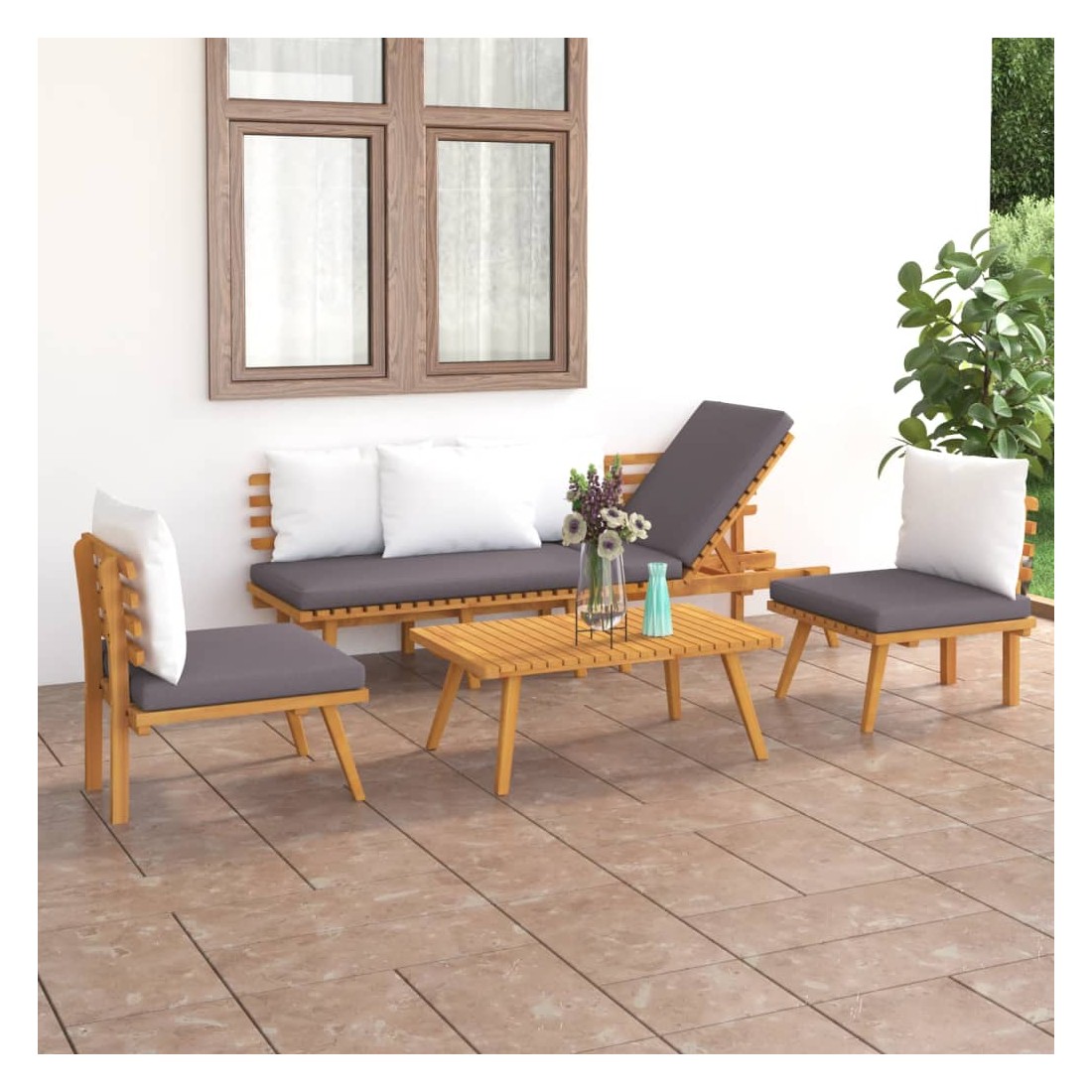 Salon de jardin 4 pcs avec coussins Bois d'acacia solide