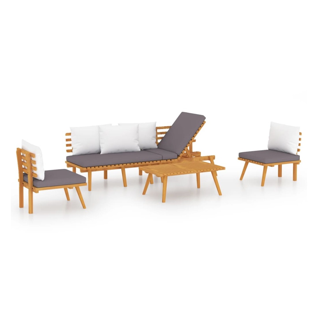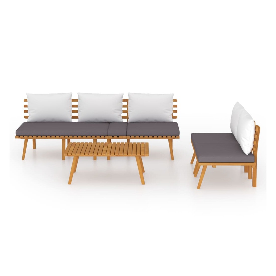 Ce salon de jardin en bois est un excellent choix pour vous détendre et profiter du beau temps, faire une sieste ou discuter avec votre famille ou vos amis. Avec un design à lattes intemporel, l’ensemble de salon en bois ajoute une touche de charme rustique à votre patio, terrasse ou jardin. Fabriqué en bois d'acacia massif, l'ensemble de mobilier d'extérieur est résistant aux intempéries et très durable. Combiné avec les coussins bien rembourrés, cet ensemble de salon de jardin offre le plus grand confort. Vous pouvez le combiner avec d'autres segments modulaires pour créer vos propres configurations d'ensemble de salon de jardin ! Remarque : afin de prolonger la durée de vie des meubles d'extérieur, nous vous recommandons de les protéger avec une housse imperméable.
