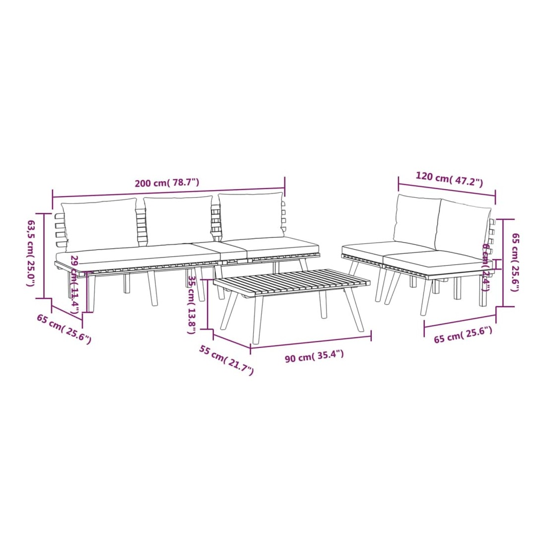 • Dimensions du canapé de milieu : 60 x 65 x 65 cm (l x P x H)