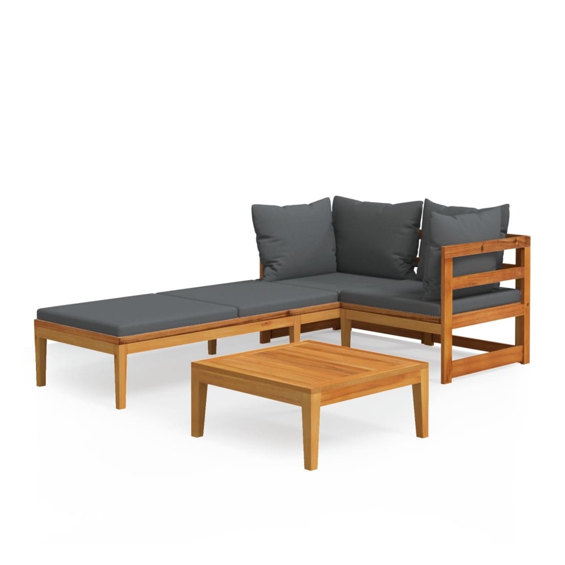 Ce salon de jardin en bois est un excellent choix pour vous détendre et profiter du beau temps, faire une sieste ou discuter avec votre famille ou vos amis. Avec un design intemporel, l’ensemble de salon ajoute une touche de charme rustique à votre patio, terrasse ou jardin. Fabriqué en bois d'acacia massif, l'ensemble de mobilier d'extérieur est résistant aux intempéries et très durable. Combiné avec les coussins bien rembourrés, cet ensemble de salon de patio offre le plus grand confort. L'accoudoir de la chaise longue peut être assemblé à gauche ou à droite selon vos besoins. Vous pouvez également combiner l'ensemble de canapé avec d'autres segments modulaires pour créer vos propres configurations d'ensemble de salon de jardin ! Remarque : afin de prolonger la durée de vie des meubl