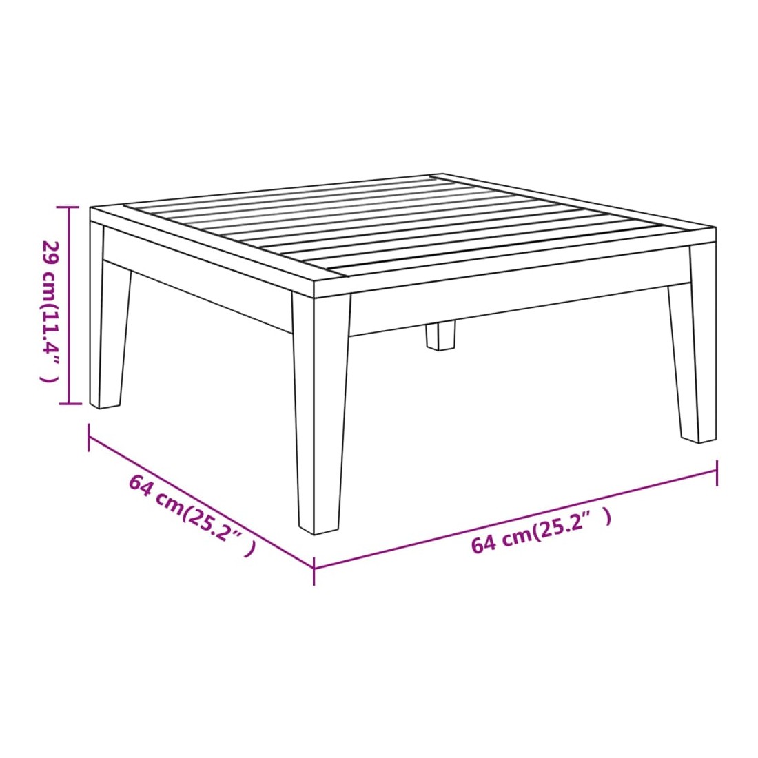 • Dimensions de la table : 64 x 64 x 29 cm (L x l x H)