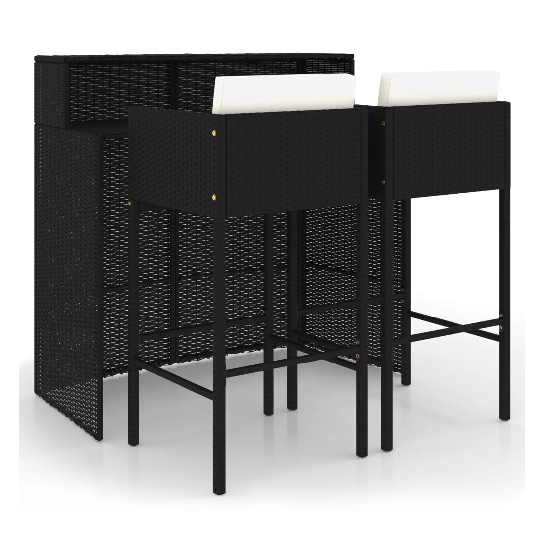 Cet ensemble élégant de bar de jardin vous permet de passer des moments agréables et confortables avec votre famille et vos amis. Fabriqué en résine tressée résistante aux intempéries et imperméable, cet ensemble de bar d'extérieur est facile à nettoyer, résistant à l'usure et adapté à un usage quotidien. Le cadre en acier enduit de poudre rend la table et les tabourets robustes et durables. Le dessus à 2 niveaux offre un espace de stockage supplémentaire pour votre article à portée de main. Le repose-pied et les coussins ajoutent également un confort d'assise supplémentaire au tabouret. Grâce à la construction légère, tous les articles sont faciles à déplacer. Remarque : afin de prolonger la durée de vie des meubles d'extérieur, nous vous recommandons de les protéger avec une housse imperméable.
