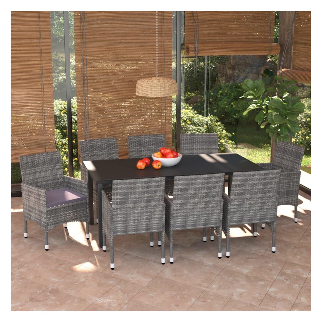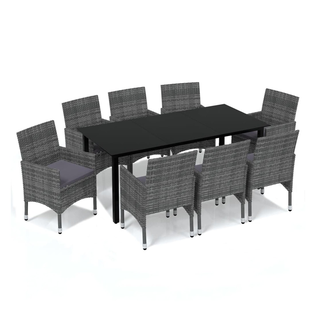 Cet ensemble de salle à manger de jardin est une combinaison parfaite de style et de fonctionnalité et est destiné à être le point de mire de votre jardin, balcon ou patio. Avec un cadre en acier robuste enveloppé de résine tressée résistante aux intempéries, les chaises de jardin sont à l'épreuve de la rouille et de la moisissure, offrant des années de détente de qualité. La table d'extérieur présente un dessus de table en verre aux lignes simples, facile à nettoyer et adapté à une utilisation en extérieur. Le cadre en aluminium assure également la stabilité et la robustesse. De plus, les coussins bien rembourrés offrent un confort ultime pendant votre temps assis. Cet ensemble de salle à manger de patio est facile à déplacer grâce à sa construction légère. Remarque : afin de prolonger la durée de vie des meubles d'extérieur, nous vous recommandons de les protéger avec une housse imperméable.
