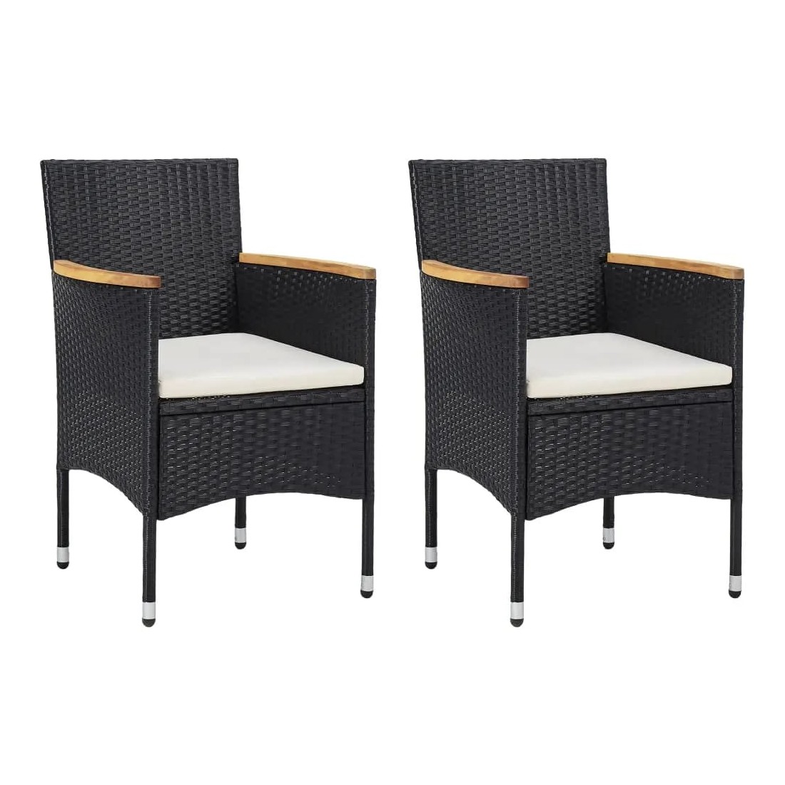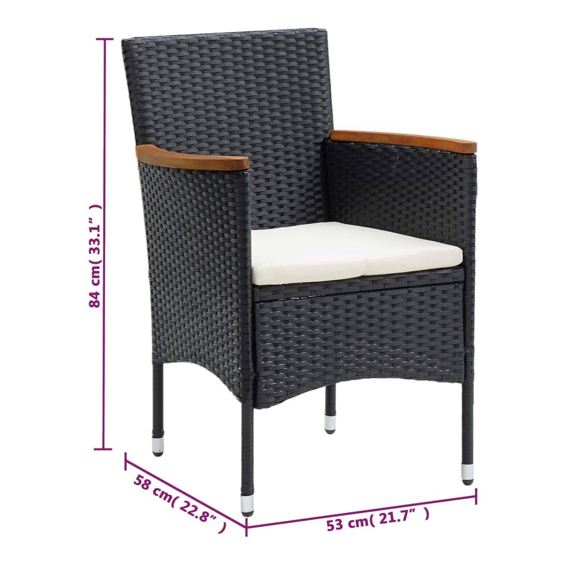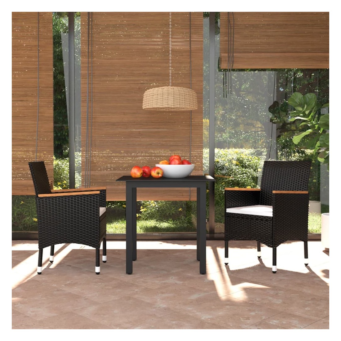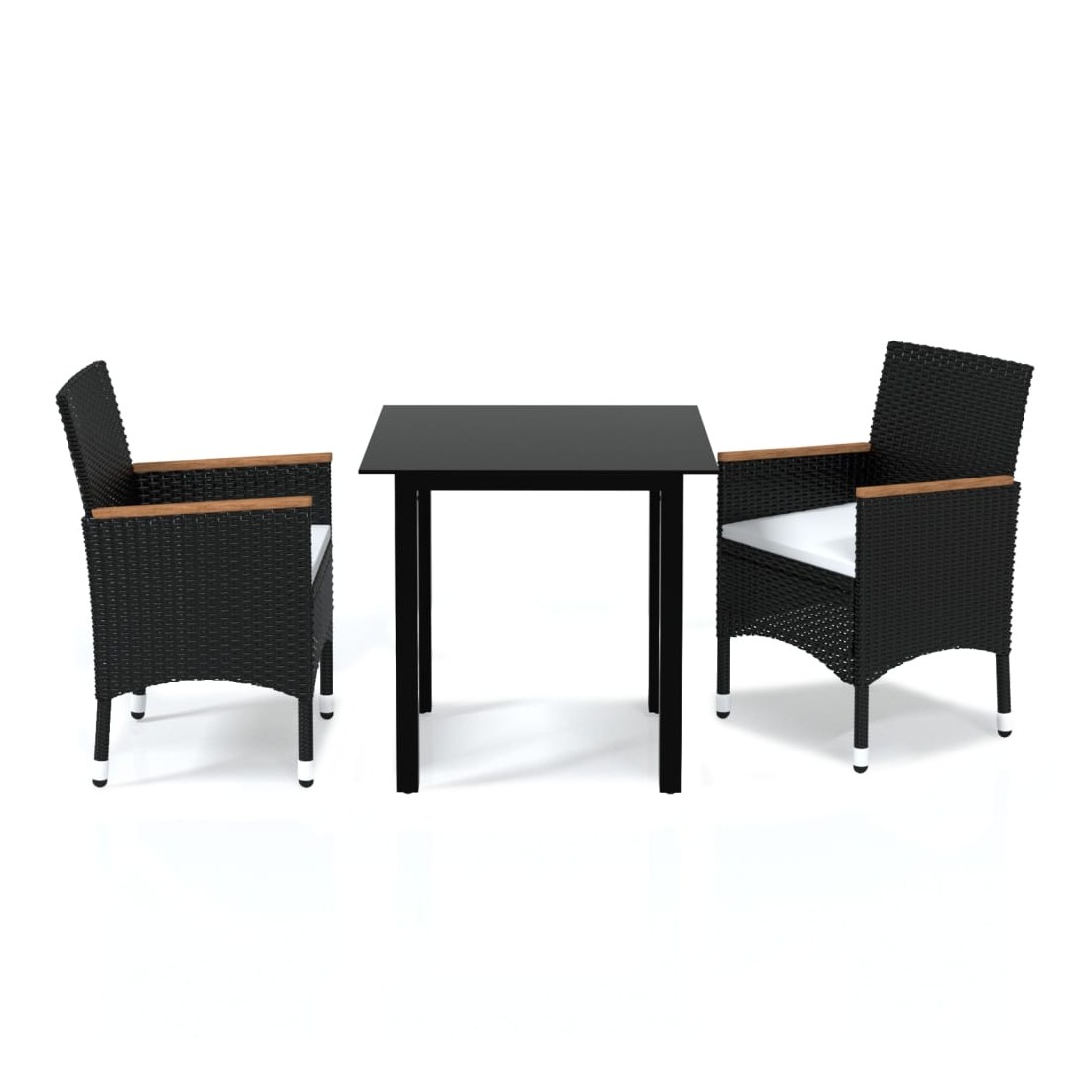 Ensemble à dîner de jardin avec coussins 3 pcs poly rotin noir