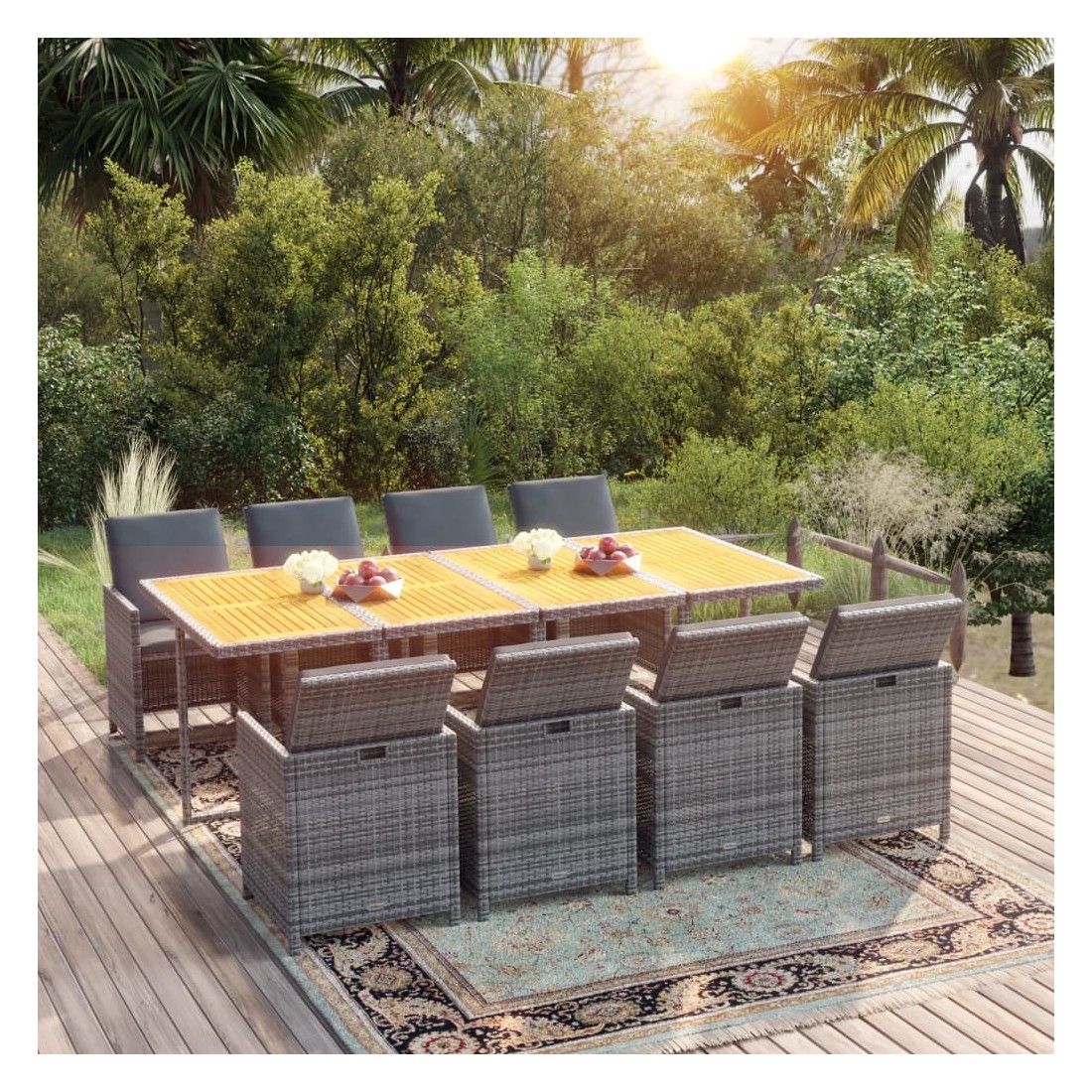 - Matériau : résine tressée, acier enduit de poudre, bois d'acacia massif avec finition à l'huile naturelle