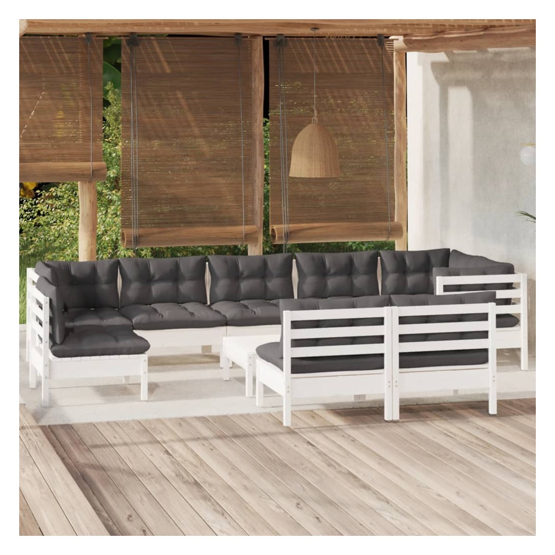 Ce salon de jardin est un excellent choix pour vous détendre et profiter du beau temps, faire une sieste ou discuter avec votre famille ou vos amis. Le salon de patio est fabriqué en bois de pin massif, ce qui le rend robuste et stable. Les coussins ajoutent un confort supplémentaire. Vous pouvez le combiner avec d’autres segments modulaires pour créer vos propres configurations de salon de jardin ! Remarque : afin de prolonger la durée de vie des meubles d'extérieur, nous vous recommandons de les protéger avec une housse imperméable.