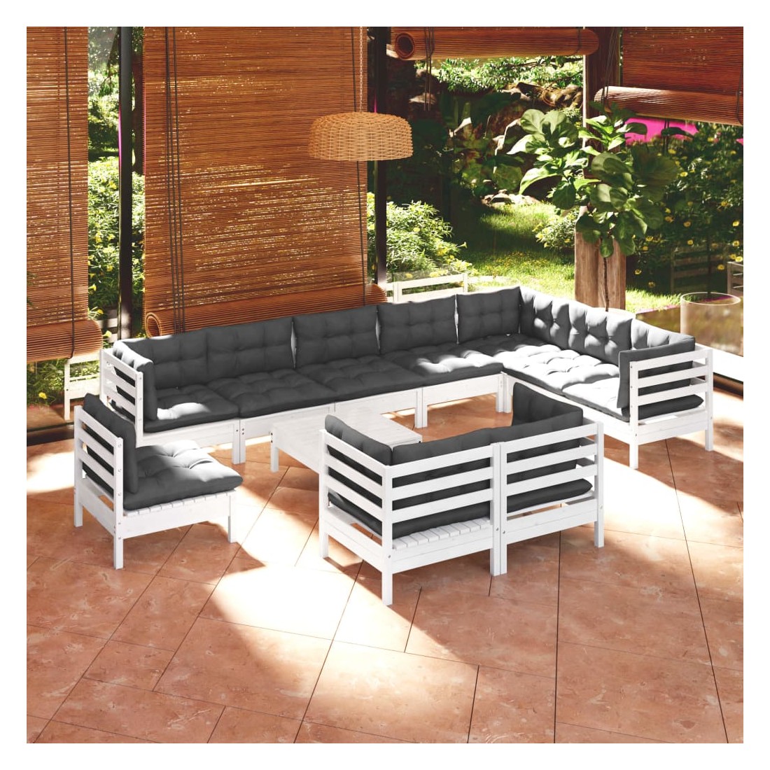 Ce salon de jardin est un excellent choix pour vous détendre et profiter du beau temps, faire une sieste ou discuter avec votre famille ou vos amis. Le salon de patio est fabriqué en bois de pin massif, ce qui le rend robuste et stable. Les coussins ajoutent un confort supplémentaire. Vous pouvez le combiner avec d’autres segments modulaires pour créer vos propres configurations de salon de jardin ! Remarque : afin de prolonger la durée de vie des meubles d'extérieur, nous vous recommandons de les protéger avec une housse imperméable.
