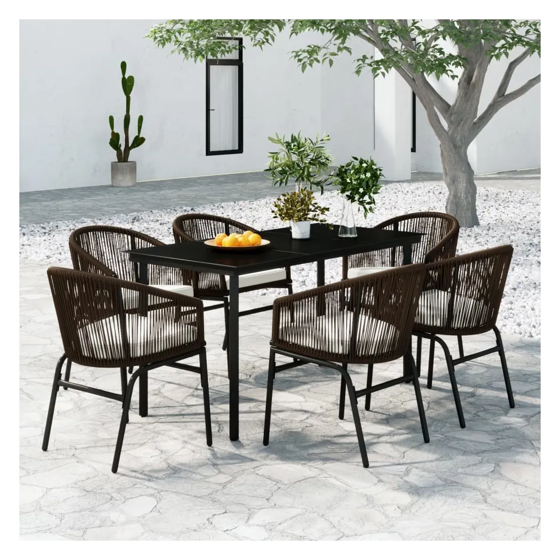 Créez une esthétique convaincante et uniforme dans votre espace extérieur avec cet ensemble de salle à manger de jardin ! Cet ensemble de repas de jardin est fait de cadre en acier enduit de poudre, ce qui le rend robuste et stable pour une utilisation quotidienne à l’extérieur. Le dessus de table en verre lisse est facile à nettoyer avec un chiffon humide et est parfait pour placer des repas, des boissons et d'autres objets décoratifs. Les chaises de patio sont en rotin PVC, ce qui les rend durables et résistantes aux intempéries et aux rayons UV. De plus, chaque siège est livré avec un coussin bien rembourré amovible pour plus de confort pendant votre temps de détente. Remarque : afin de prolonger la durée de vie des meubles d'extérieur, nous vous recommandons de les protéger avec une housse imperméable.