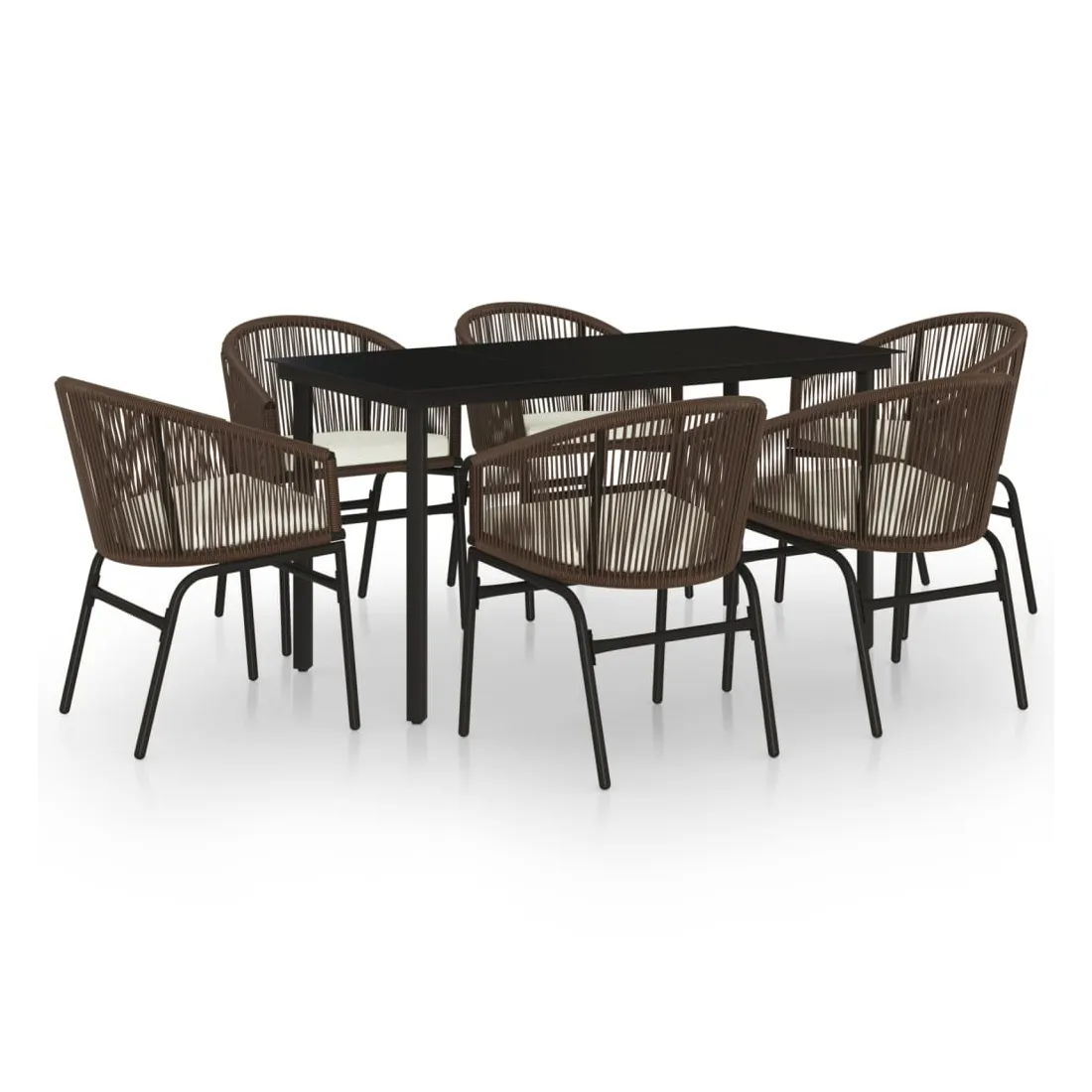 Créez une esthétique convaincante et uniforme dans votre espace extérieur avec cet ensemble de salle à manger de jardin ! Cet ensemble de repas de jardin est fait de cadre en acier enduit de poudre, ce qui le rend robuste et stable pour une utilisation quotidienne à l’extérieur. Le dessus de table en verre lisse est facile à nettoyer avec un chiffon humide et est parfait pour placer des repas, des boissons et d'autres objets décoratifs. Les chaises de patio sont en rotin PVC, ce qui les rend durables et résistantes aux intempéries et aux rayons UV. De plus, chaque siège est livré avec un coussin bien rembourré amovible pour plus de confort pendant votre temps de détente. Remarque : afin de prolonger la durée de vie des meubles d'extérieur, nous vous recommandons de les protéger avec un