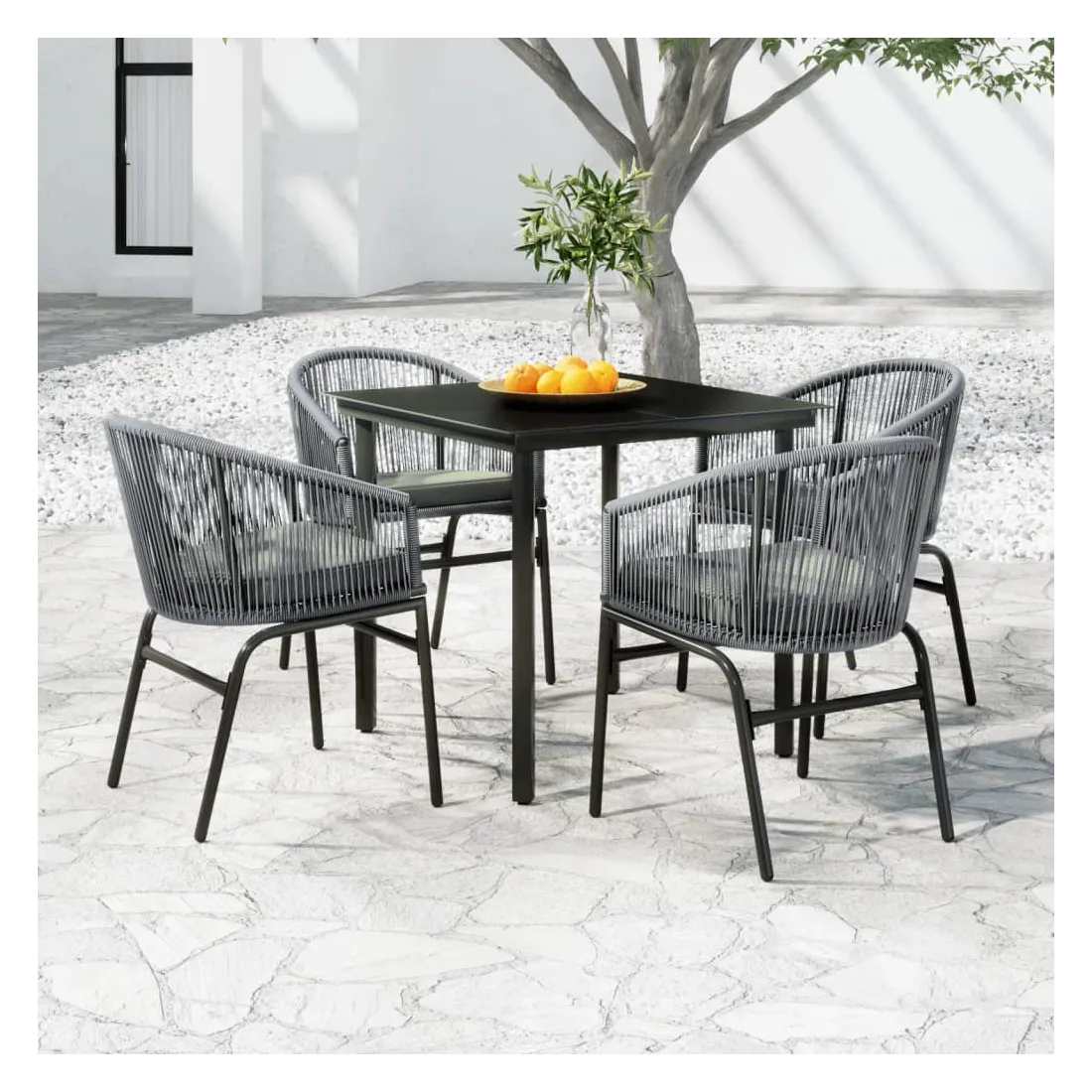 Créez une esthétique convaincante et uniforme dans votre espace extérieur avec cet ensemble de salle à manger de jardin ! Cet ensemble de repas de jardin est fait de cadre en acier enduit de poudre, ce qui le rend robuste et stable pour une utilisation quotidienne à l’extérieur. Le dessus de table en verre lisse est facile à nettoyer avec un chiffon humide et est parfait pour placer des repas, des boissons et d'autres objets décoratifs. Les chaises de patio sont en rotin PVC, ce qui les rend durables et résistantes aux intempéries et aux rayons UV. De plus, chaque siège est livré avec un coussin bien rembourré amovible pour plus de confort pendant votre temps de détente. Remarque : afin de prolonger la durée de vie des meubles d'extérieur, nous vous recommandons de les protéger avec une housse imperméable.