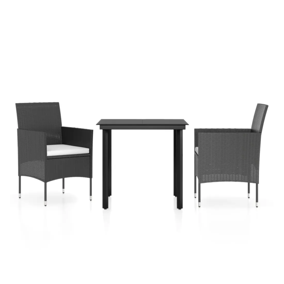 Ensemble à manger de jardin avec coussins 3 pcs noir