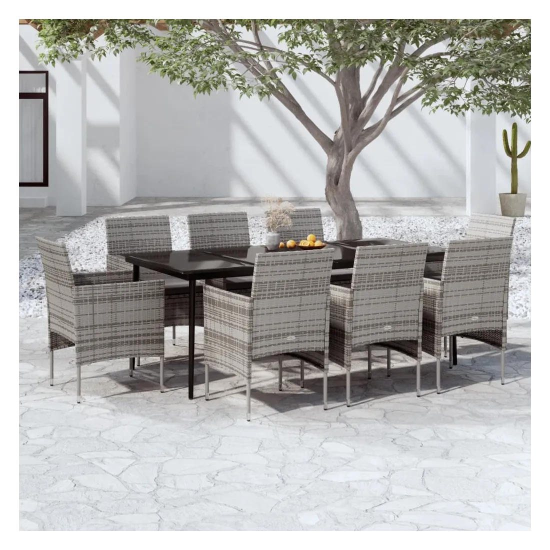 Ensemble à manger de jardin et coussins 9pcs Gris/noir