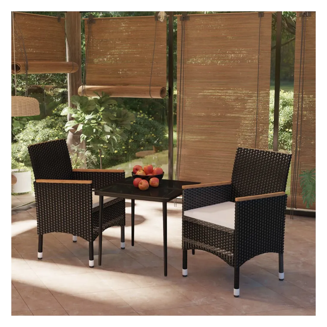 Ensemble à manger de jardin avec coussins 3 pcs noir