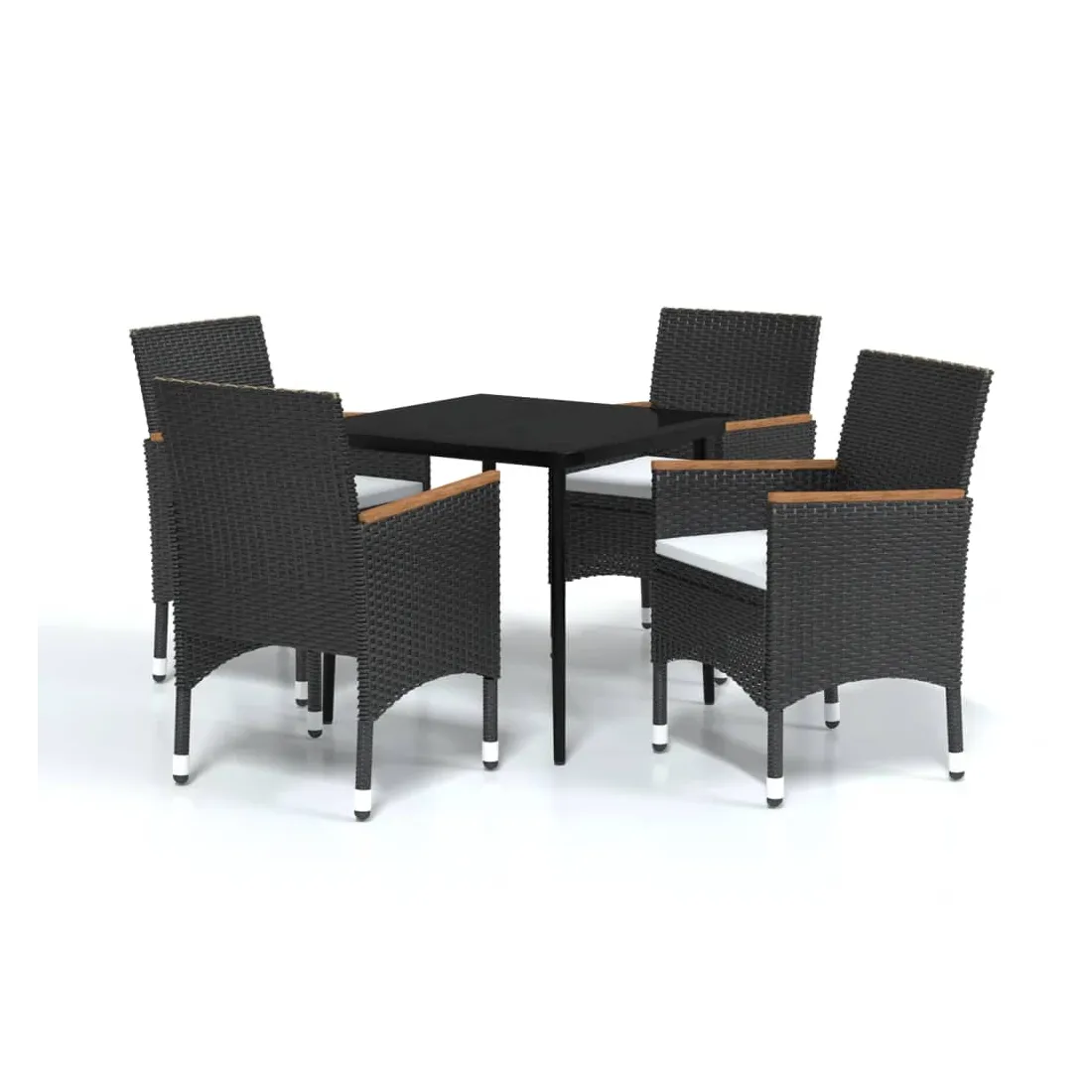 Cet ensemble de salle à manger de jardin est un excellent choix pour manger ou vous détendre dans l'espace extérieur ! Les cadres en acier enduit de poudre rendent la table et les chaises robustes et stables pour une utilisation quotidienne à l'extérieur. Grâce à la résine tressée résistante à l’eau, les chaises sont faciles à nettoyer et conviennent à un usage quotidien. Le dessus de table en verre lisse est facile à nettoyer avec un chiffon humide et parfait pour placer les repas, les boissons et autres articles décoratifs. Remarque : afin de prolonger la durée de vie des meubles d'extérieur, nous vous recommandons de les protéger avec une housse imperméable.