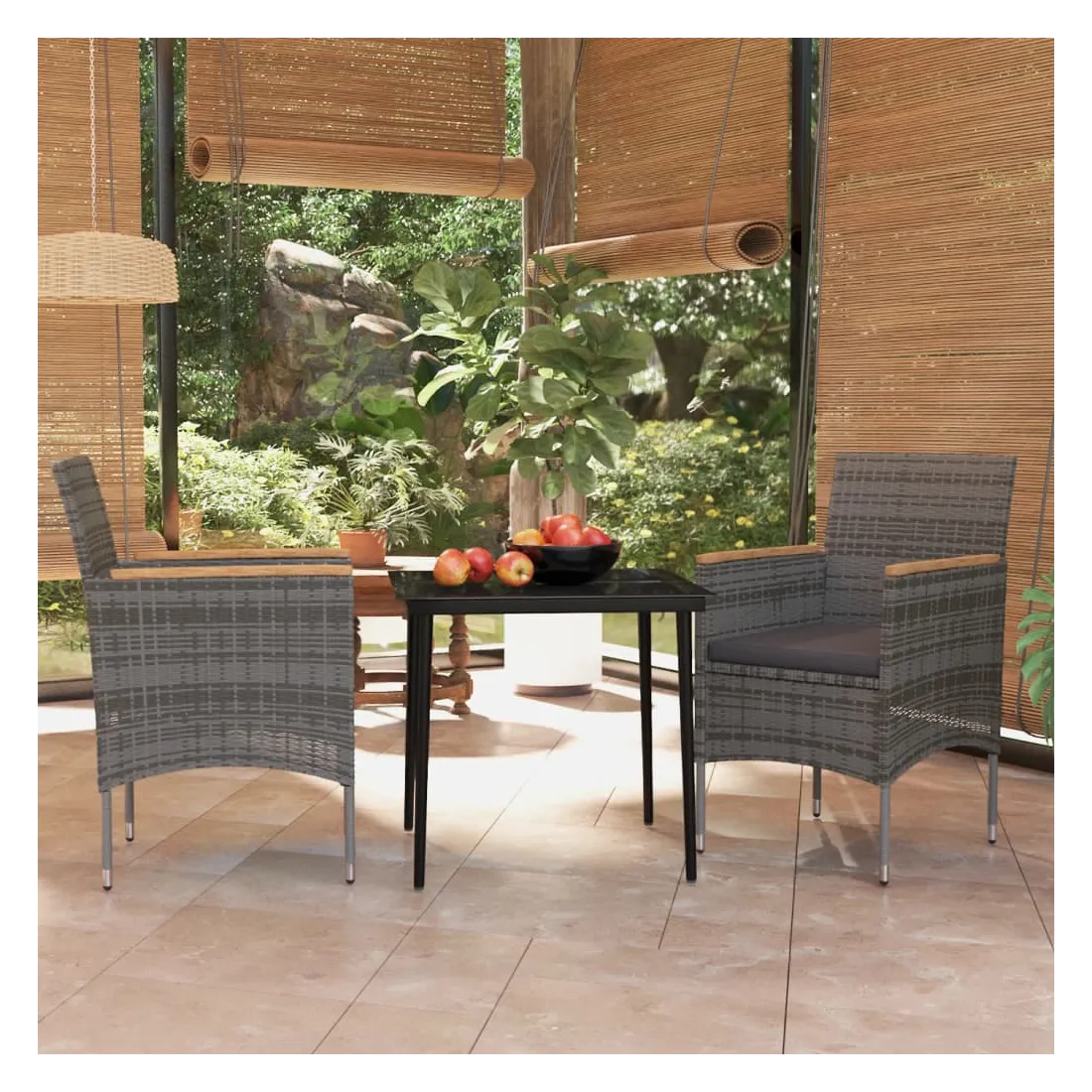 • Matériau : résine tressée, acier enduit de poudre, verre, bois d'acacia massif