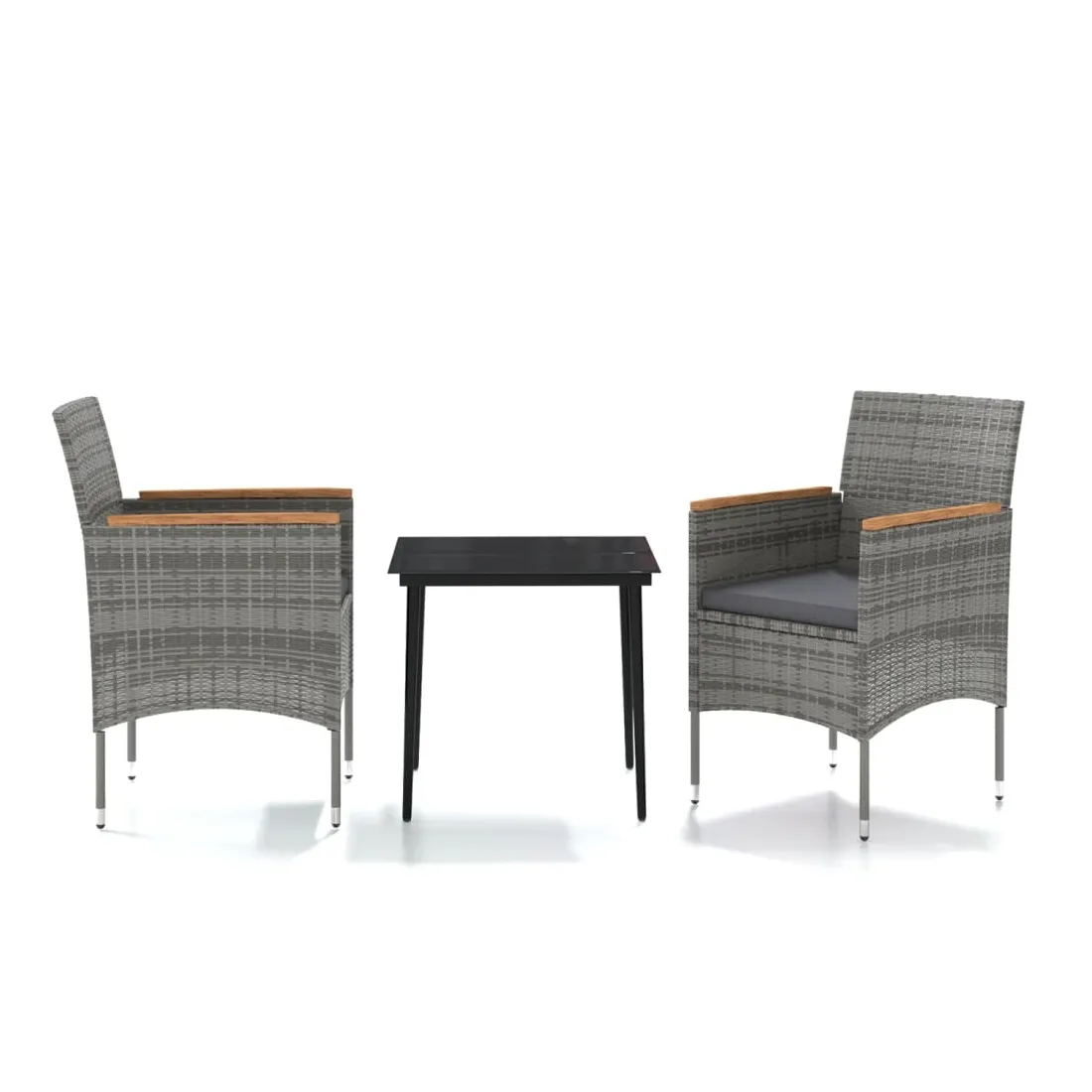 Ensemble à manger de jardin et coussins 3 pcs Gris et noir