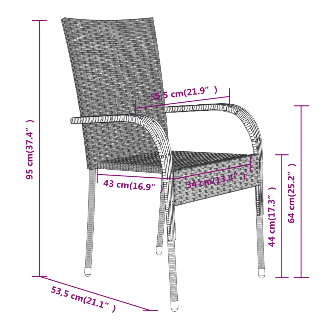 • Dimensions de la chaise : 55,5 x 53,5 x 95 cm (l x P x H)