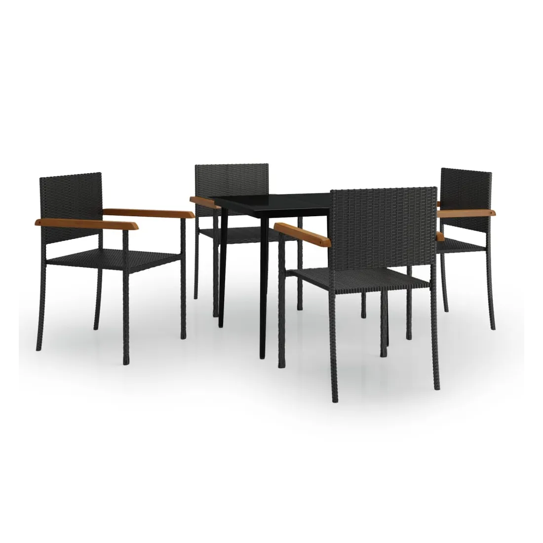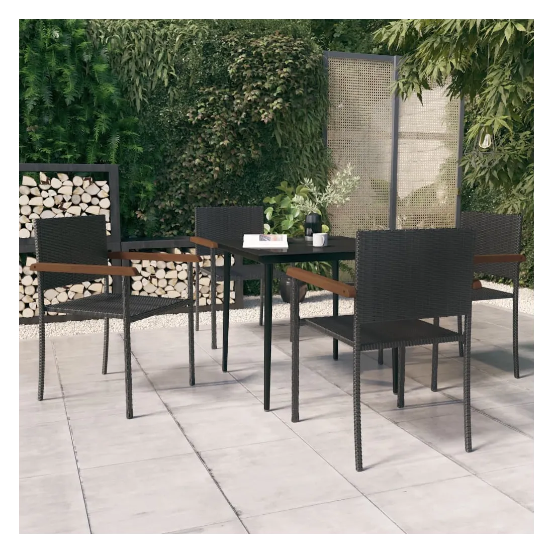 Cet élégant ensemble de salle à manger de jardin est destiné à être le point de mire de votre jardin ou patio ! C'est un excellent choix pour les repas en plein air ou pour vous détendre dans l'espace extérieur ! Les cadres en acier enduit de poudre rendent la table et les chaises robustes et stables pour une utilisation quotidienne en extérieur. Grâce à la résine tressée résistante à l’eau, les chaises sont faciles à nettoyer et résistantes à l'usure. Le dessus de table en verre lisse est facile à nettoyer avec un chiffon humide et parfait pour placer les repas, les boissons et autres articles décoratifs. Remarque : afin de prolonger la durée de vie des meubles d'extérieur, nous vous recommandons de les protéger avec une housse imperméable.