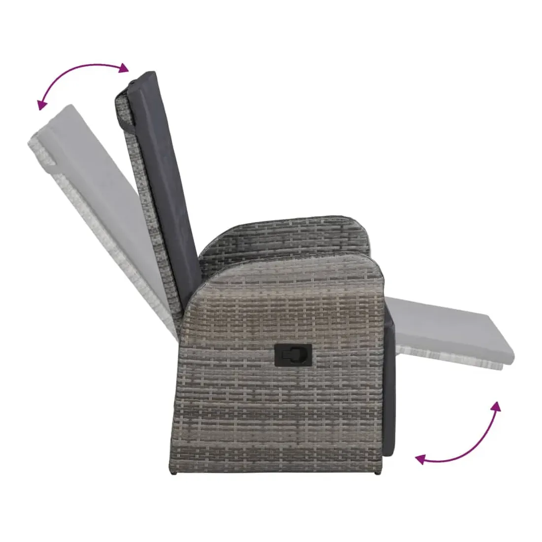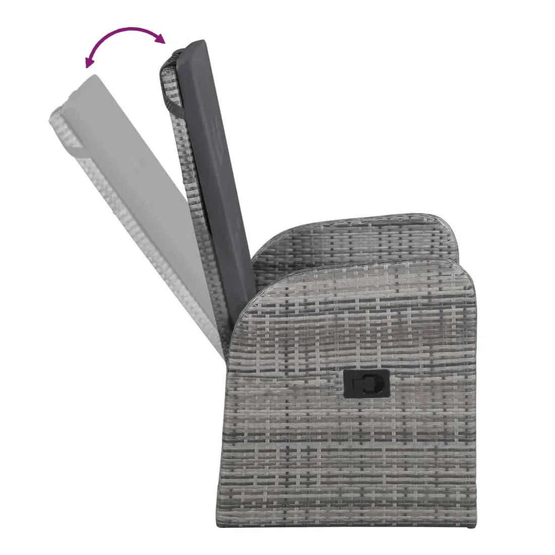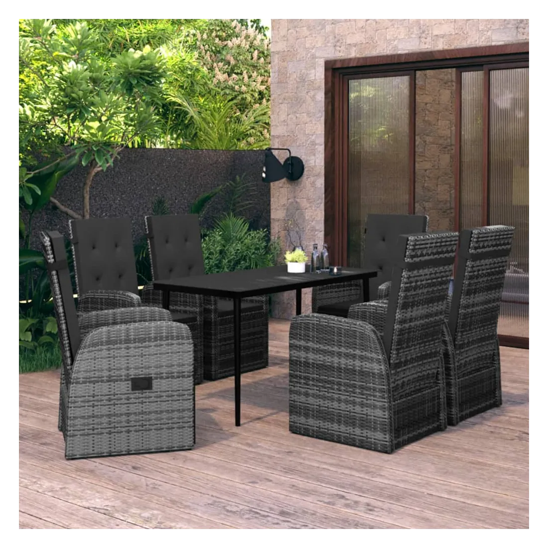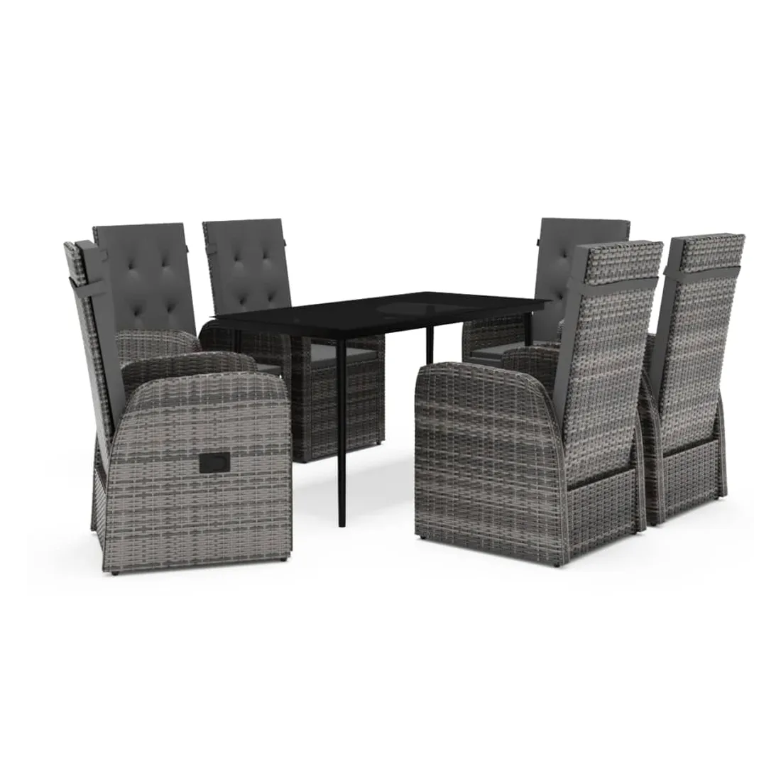 Cet élégant ensemble de salle à manger de jardin est destiné à être le point de mire de votre jardin ou patio ! C'est un excellent choix pour les repas en plein air ou pour vous détendre dans l'espace extérieur ! Les cadres en acier enduit de poudre rendent la table et les chaises robustes et stables pour une utilisation quotidienne à l'extérieur. Grâce à la résine tressée résistante à l'eau, les chaises sont faciles à nettoyer et résistantes à l'usure. Le dossier et le repose-pied peuvent être ajustés en tirant sur le bouton sur le côté. Grâce à leur fabrication légère, elles sont faciles à déplacer. Les coussins de siège bien rembourrés ajoutent également un confort supplémentaire. Les housses en polyester nécessitant peu d'entretien peuvent être retirées et lavées. De plus, le dessus de table en verre lisse est facile à nettoyer avec un chiffon humide et parfait pour ranger repas, boissons et autres articles décoratifs. Remarque : afin de prolonger la durée de vie des meubles d'extérieur, nous vous recommandons de les protéger avec une housse imperméable.