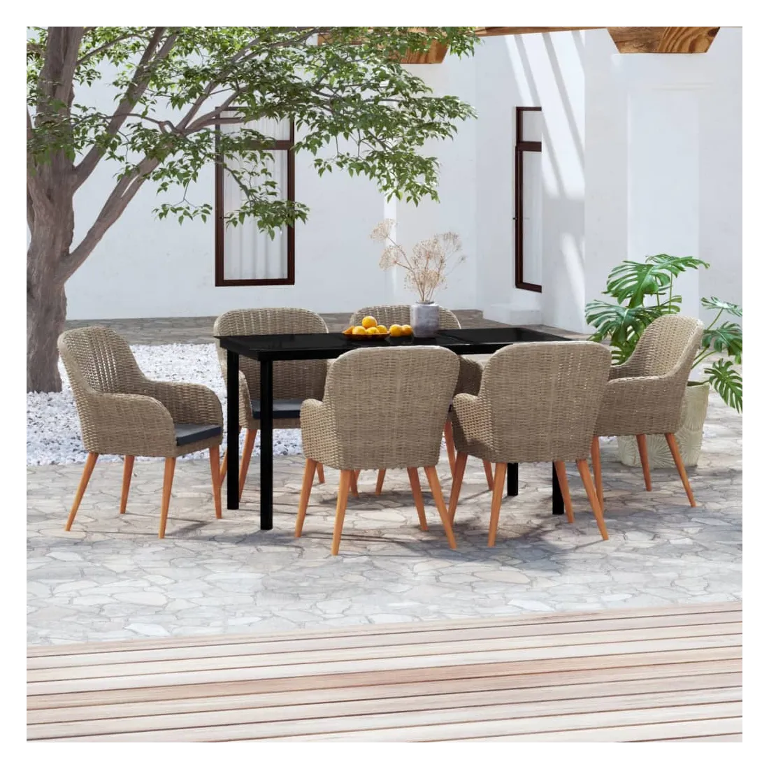 Cet élégant ensemble de salle à manger de jardin est destiné à être le point de mire de votre jardin ou patio ! C'est un excellent choix pour les repas en plein air ou pour vous détendre dans l'espace extérieur ! Les cadres en acier endui de poudre rendent la table et les chaises solides et stables pour une utilisation quotidienne en extérieur. Grâce à la résine tressée résistante à l'eau, les chaises sont faciles à nettoyer et résistantes à l'usure. La forme ergonomique et les coussins amovibles bien rembourrés en mousse offrent un confort d'assise optimal. Les housses de coussin en polyester, qui nécessitent peu d'entretien, peuvent être facilement retirées et lavées. En outre, le dessus de table en verre lisse est facile à nettoyer avec un chiffon humide et est parfait pour placer des repas, des boissons et d'autres objets décoratifs. Remarque : afin de prolonger la durée de vie des meubles d'extérieur, nous vous recommandons de les protéger avec une housse imperméable.