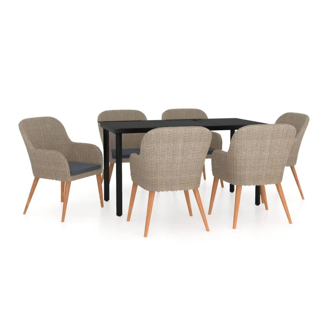Ensemble à manger de jardin et coussins 7 pcs Marron