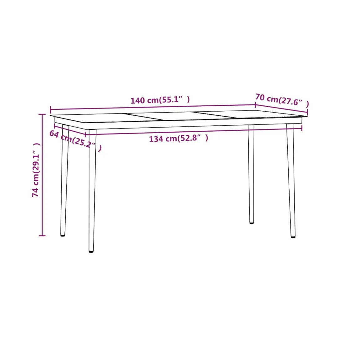 • Dimensions de la table : 140 x 70 x 74 cm (L x l x H)