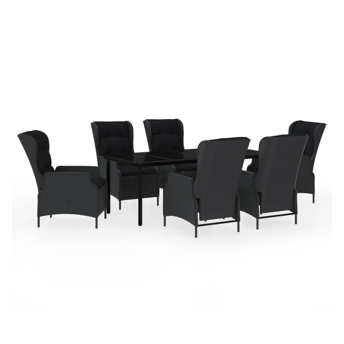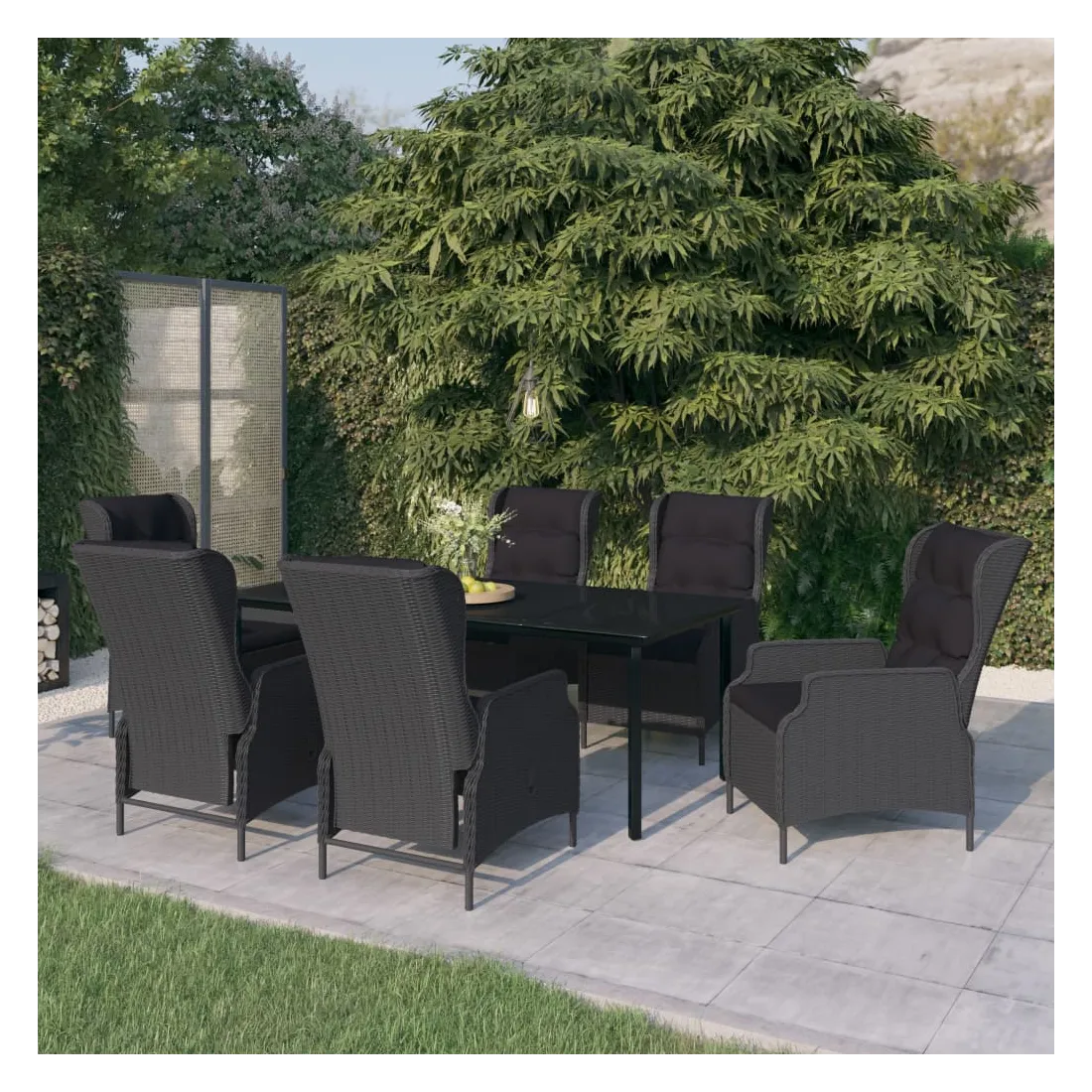 Profitez d'un bon repas ou d'un thé l'après-midi dans votre espace extérieur avec cet ensemble de salle à manger de jardin ! Ayant un design élégant, il deviendra le point central de votre jardin et de votre terrasse ! Cet ensemble de salle à manger d'extérieur pratique est doté d'un cadre en acier, ce qui le rend solide et robuste. Les chaises inclinables de jardin sont fabriquées en résine tressée résistante à l'eau et sans entretien, ce qui les rend parfaites pour une utilisation en extérieur. Les coussins bien rembourrés ajoutent un confort supplémentaire à vos repas. Les housses des coussins sont équipées d'une fermeture éclair et sont amovibles et lavables. Grâce au mécanisme de levage à gaz, le dossier est également réglable pour s'adapter à vos positions. En touchant le bouton sur le côté, le dossier peut s'incliner, pour une position confortable. En outre, le dessus de table en verre lisse est facile à nettoyer à l'aide d'un chiffon humide et est excellent pour placer des repas, des boissons et d'autres objets décoratifs. Remarque : afin de prolonger la durée de vie des meubles d'extérieur, nous vous recommandons de les protéger avec une housse imperméable.