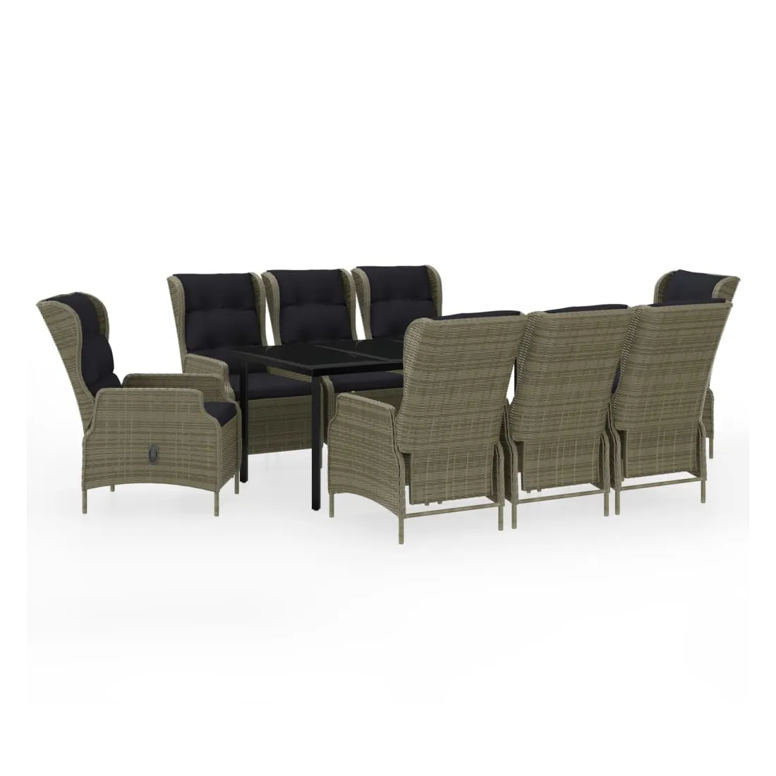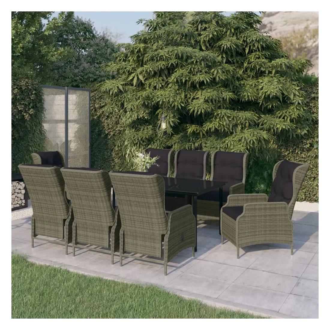 Profitez d'un bon repas ou d'un thé l'après-midi dans votre espace extérieur avec cet ensemble de salle à manger de jardin ! Ayant un design élégant, il deviendra le point central de votre jardin et de votre terrasse ! Cet ensemble de salle à manger d'extérieur pratique est doté d'un cadre en acier, ce qui le rend solide et robuste. Les chaises inclinables de jardin sont fabriquées en résine tressée résistante à l'eau et sans entretien, ce qui les rend parfaites pour une utilisation en extérieur. Les coussins bien rembourrés ajoutent un confort supplémentaire à vos repas. Les housses des coussins sont équipées d'une fermeture éclair et sont amovibles et lavables. Grâce au mécanisme de levage à gaz, le dossier est également réglable pour s'adapter à vos positions. En touchant le bouton