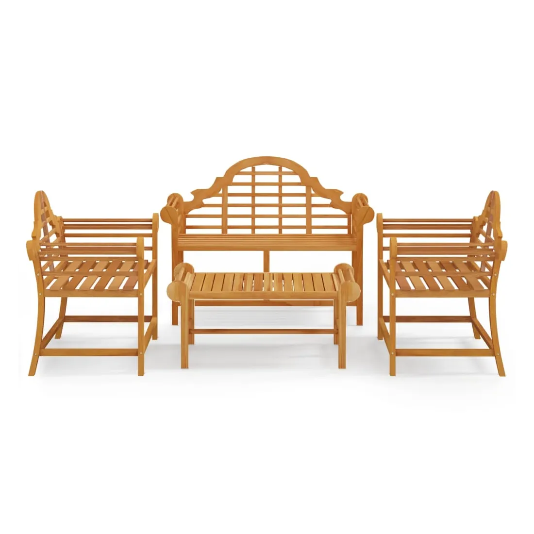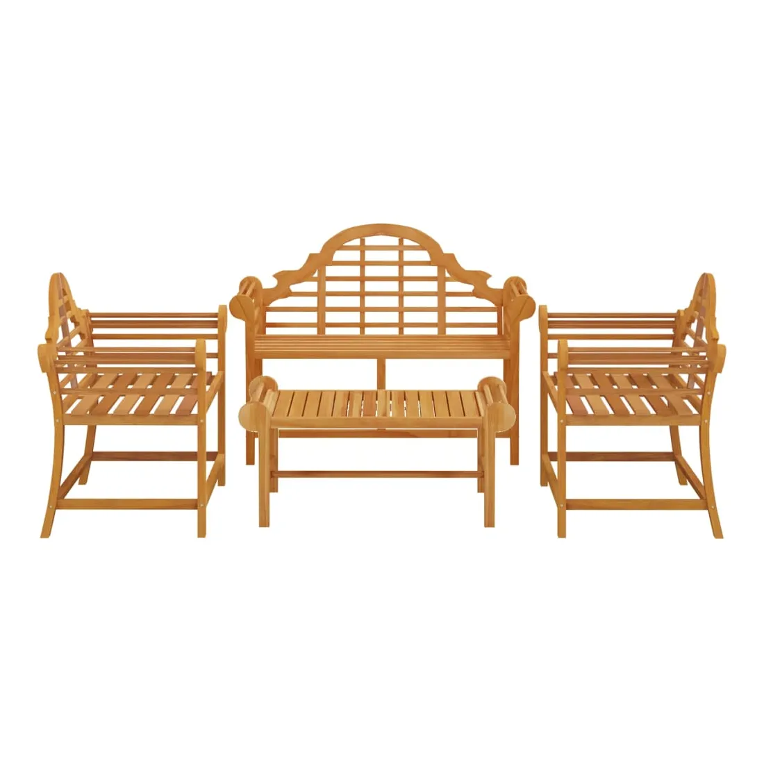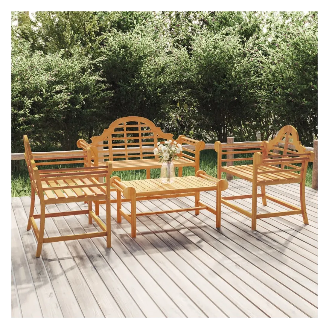 Cet ensemble de salon de jardin en bois apportera un look vintage à votre jardin, terrasse ou autre espace extérieur ! Matériau durable : le bois de teck massif est un beau matériau naturel. Il a été chevronné, séché au four, puis sablé finement pour lui donner une apparence très lisse. Le bois de teck est connu pour sa résistance exceptionnelle et sa résistance aux intempéries. Cadre stable : le cadre en bois de l'ensemble de salon assure robustesse et stabilité. Table pratique : la table du milieu est idéale pour garder vos objets de première nécessité à portée de main lorsque vous êtes assis. La table de jardin est également équipée de deux rails de chaque côté pour empêcher les objets de tomber. Bon à savoir : Pour faciliter au maximum le montage, chaque produit est livré avec des