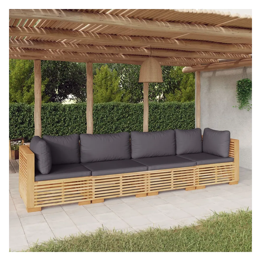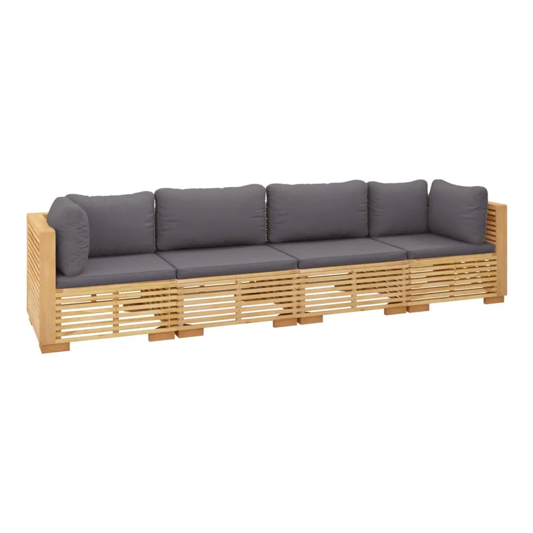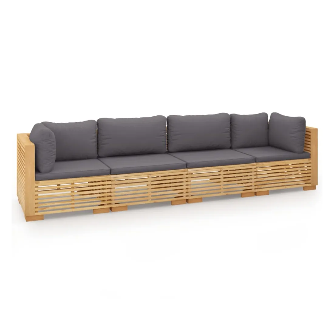 Salon de jardin 4 pcs avec coussins Bois de teck solide