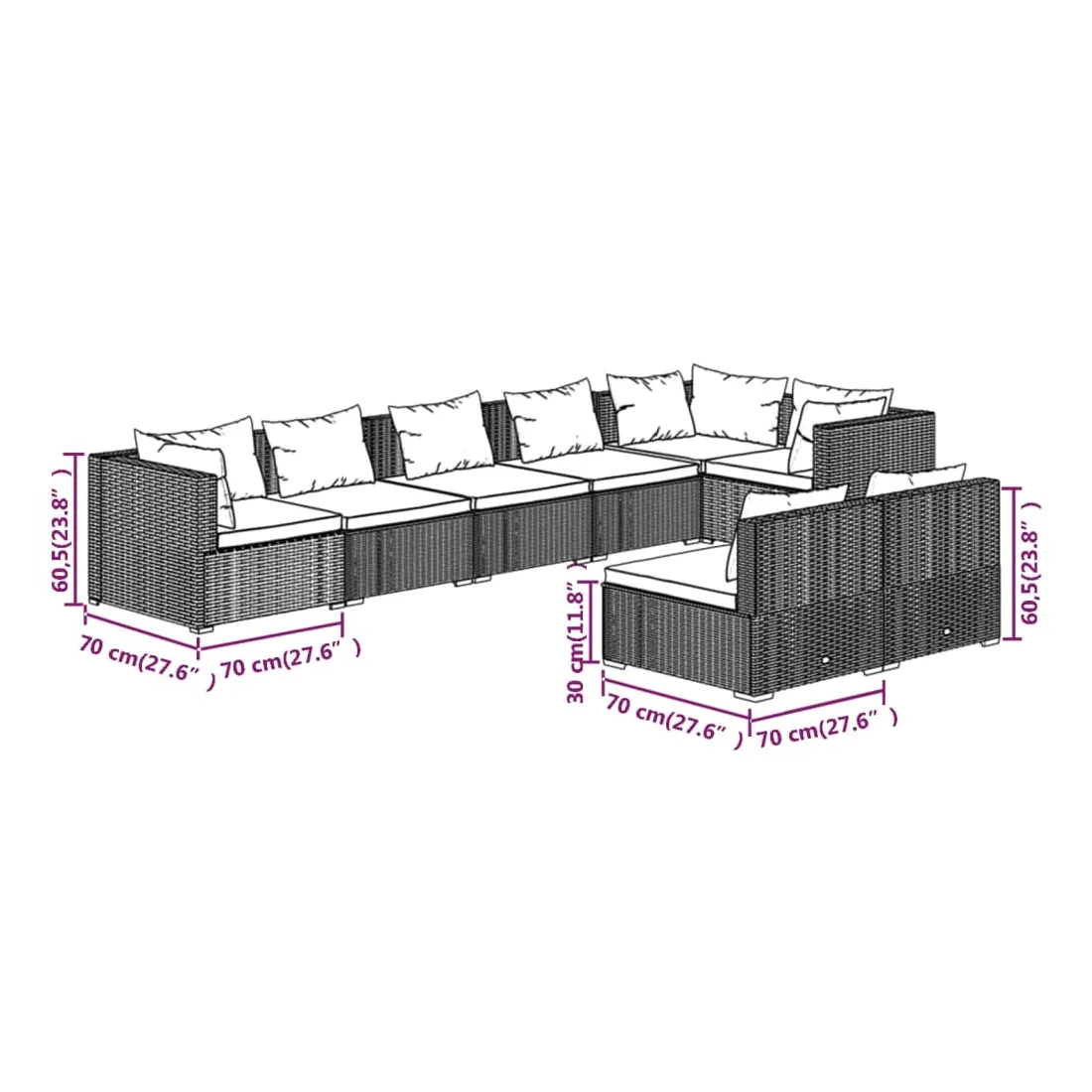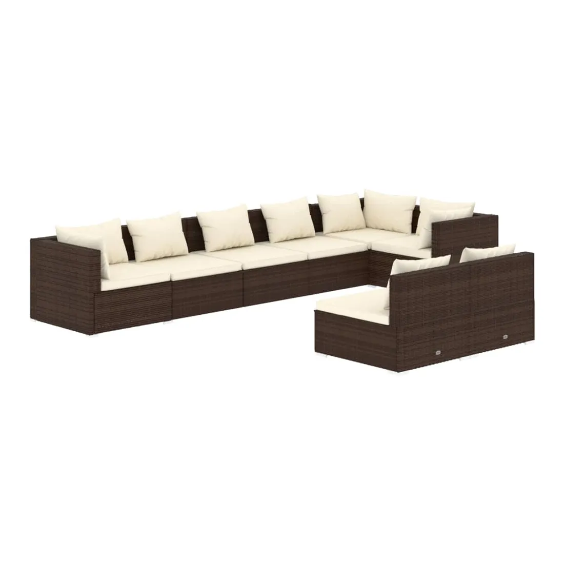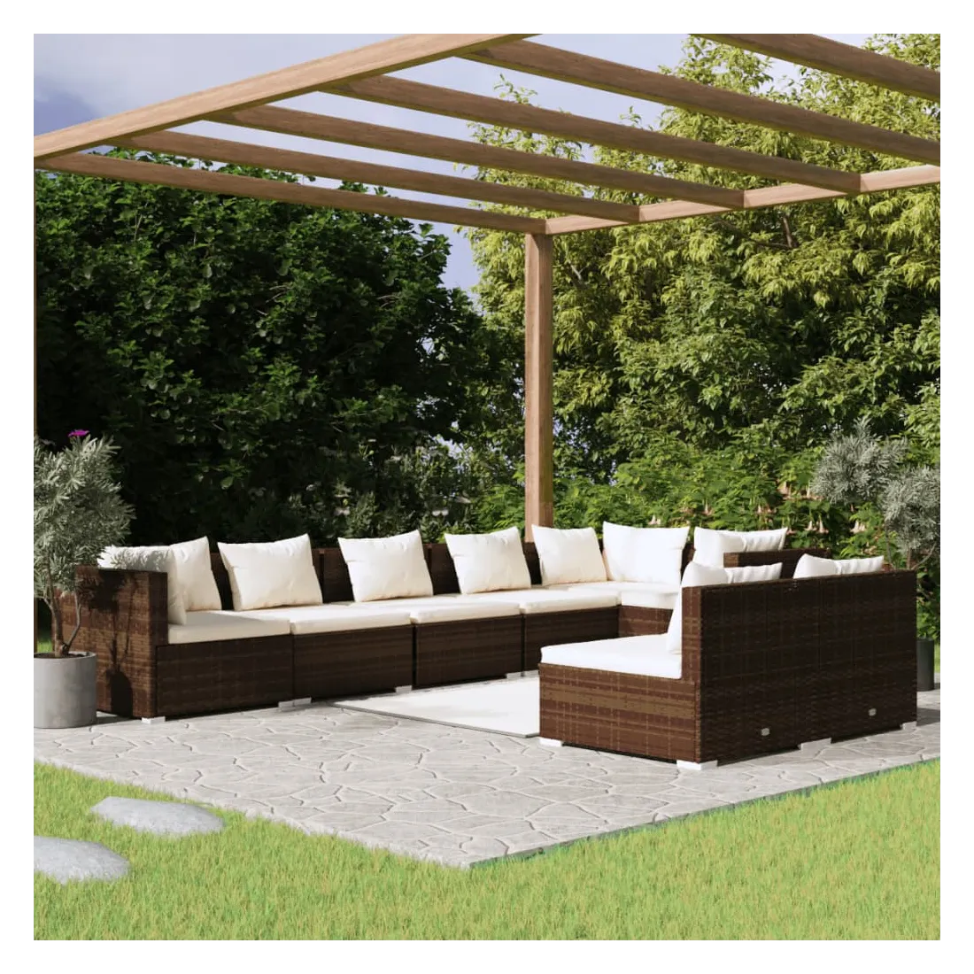 Salon de jardin 8 pcs avec coussins Marron Résine tressée